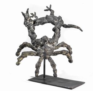 GIOVANNI PAGANIN (Asiago 1913 - Milano 1997) Granchio con chele scultura in bronzo cm 32x31,5, con base cm 12x10x22,2 [..]