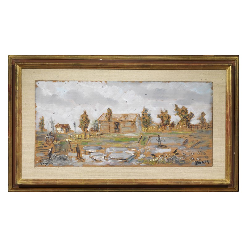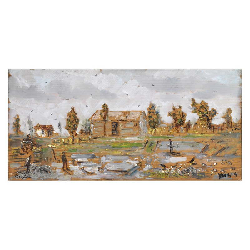 FILIPPO DE PISIS (Ferrara 1896-Milano 1956) Paesaggio olio su tavola cm 27x57 firmato in basso a destra iscrizione indecifrabile in basso a sinistra al retro dichiarazione di autenticità