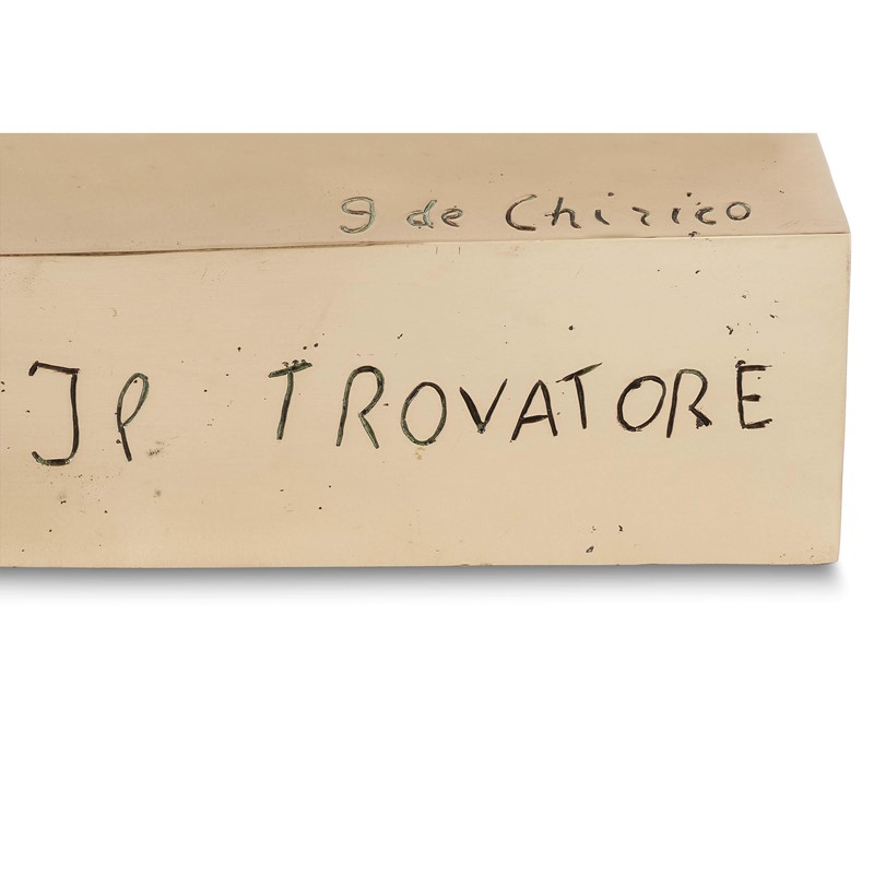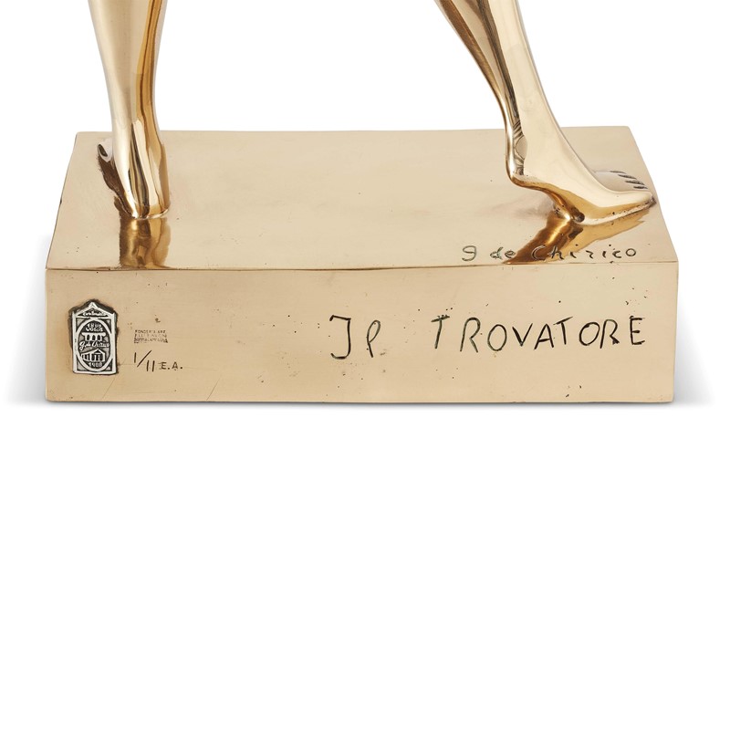 L'opera porta impressa la firma, la numerazione, la punzonatura della Fonderia Bonvicini di Verona ed il marchio del centenario della nascita del Maestro Giorgio de Chirico.