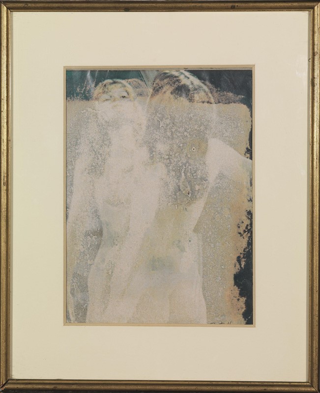 MIMMO ROTELLA (Catanzaro 1918 - Milano 2006) A Marina 1974 effacage su carta di giornale applicato su cartoncino cm 28,1x21 firmato in basso a destra al retro del supporto cartaceo dedica "A marina erotellicamente / Mimmo Rotella / Roma, 13-10-1978" al retro del supporto cartaceo "questo effacage è stato eseguito a Ramatuelle (Costa Azzurra) il 1974"