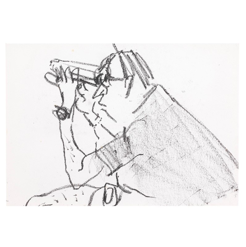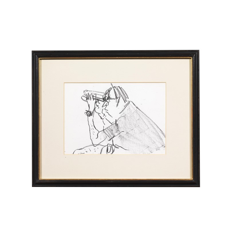 VARLIN (LEOPOLD GUGGENHEIM) (Zurigo 1900 - Bondo 1977) Uomo con il cannocchiale 1956 carboncino su carta cm 25x34 in basso a destra timbro a secco dell’artista al retro cartiglio Compagnia del Disegno, Milano