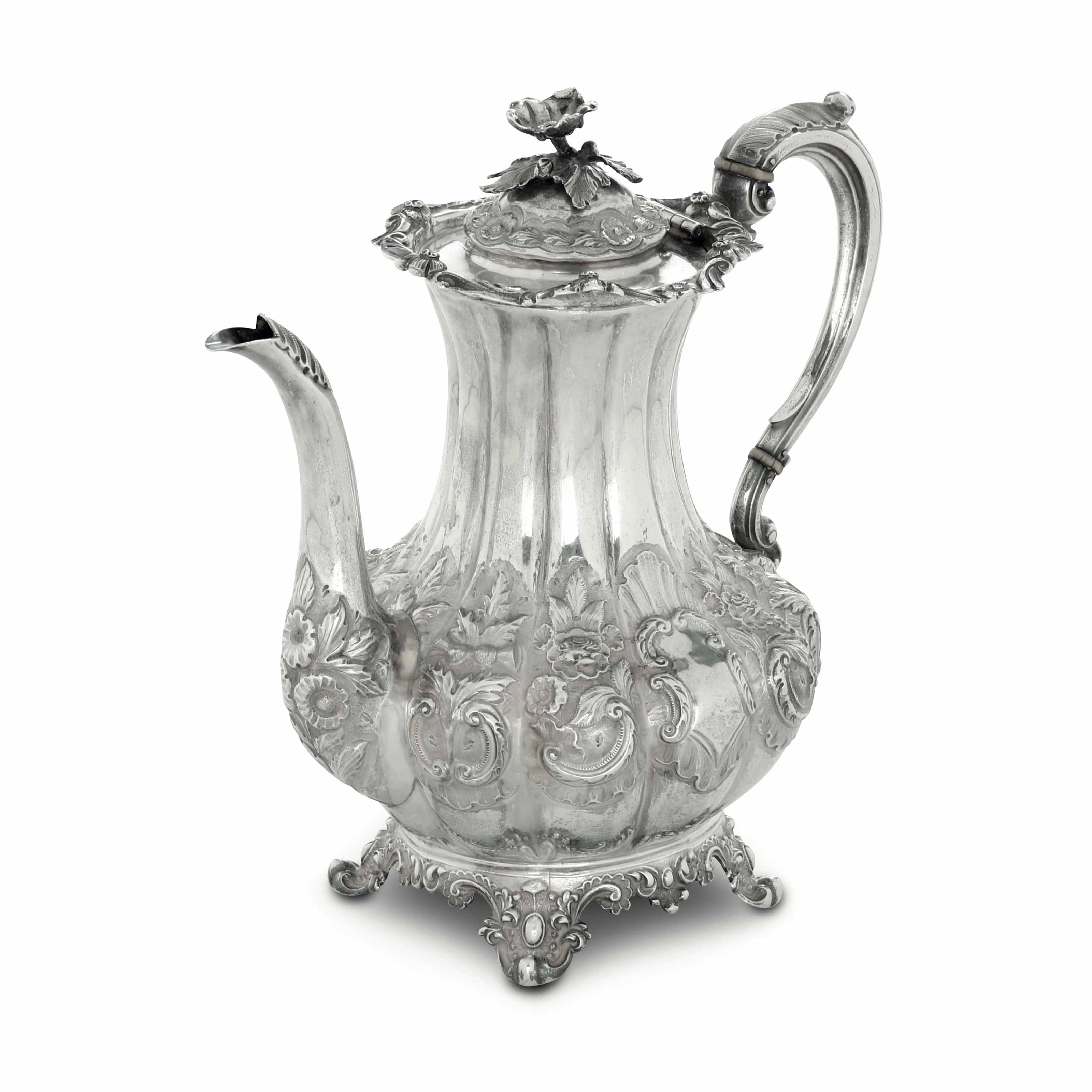 Caffettiera. Argento fuso, sbalzato e cesellato. Londra 1850. Argentiere WH (non [..]