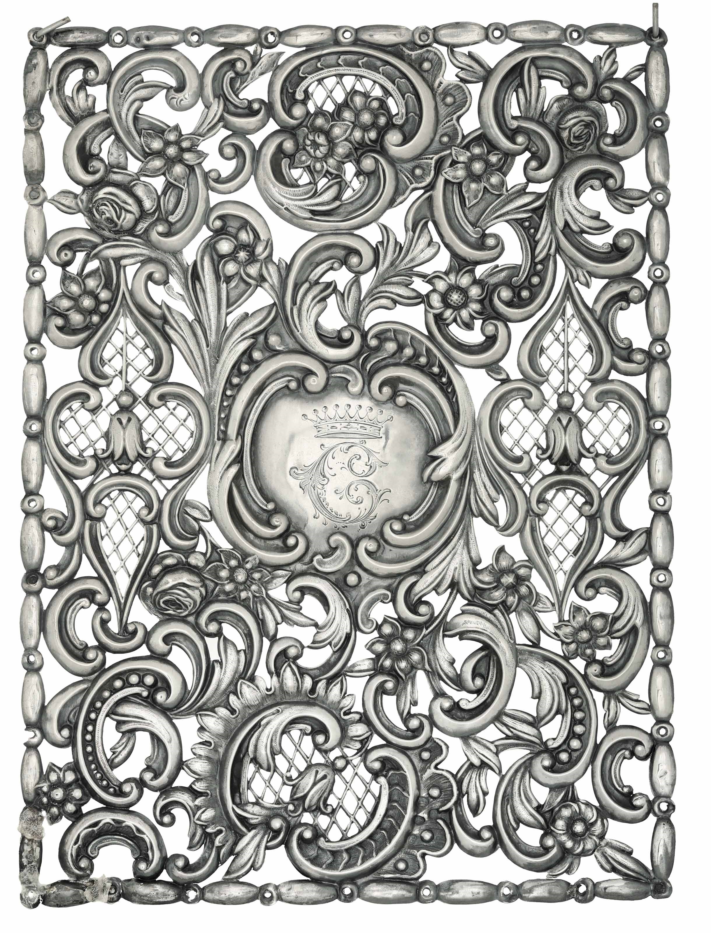 Copertina per legatura. Argento fuso, sbalzato, traforato e cesellato. Londra 1890. [..]