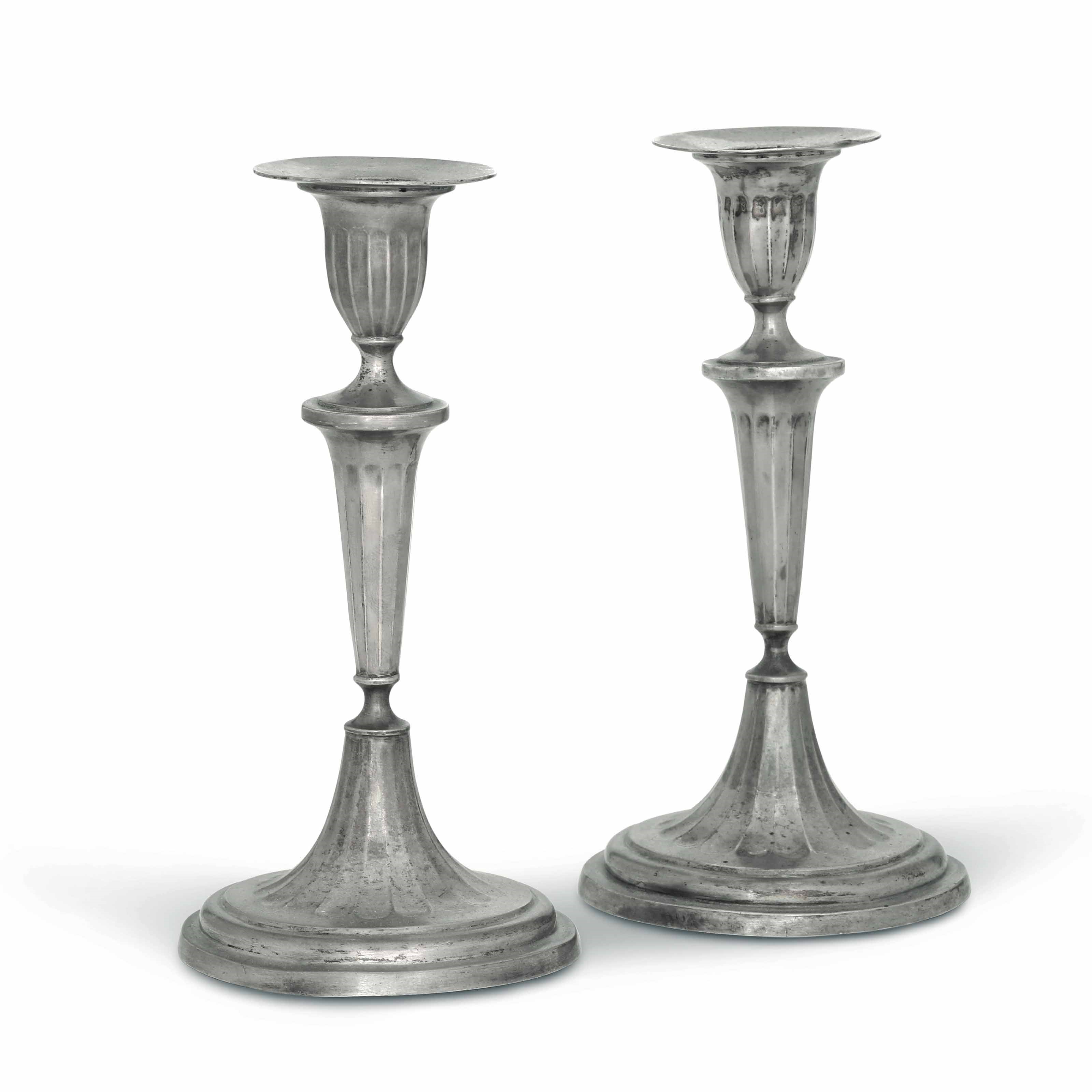 Coppia di candelieri. Argento fuso e sbalzato. Italia inizi XIX secolo. Genova (?) [..]