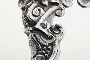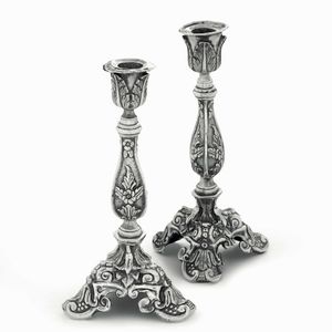 Coppia di candelieri. Argento fuso, sbalzato e cesellato. Portogallo, città di Porto, [..]