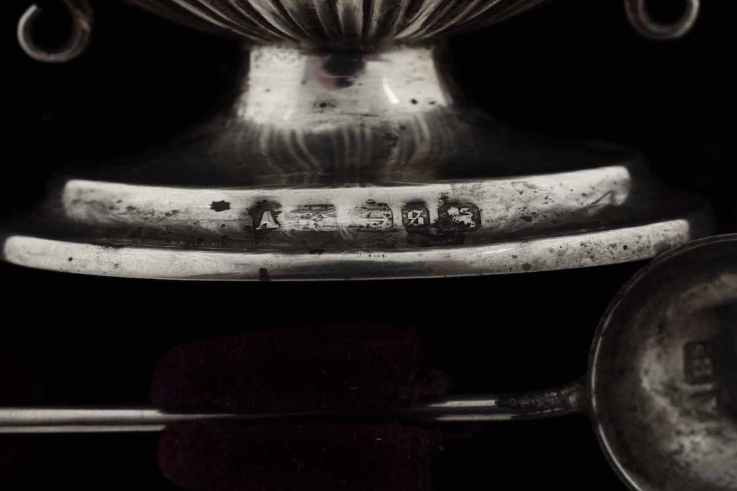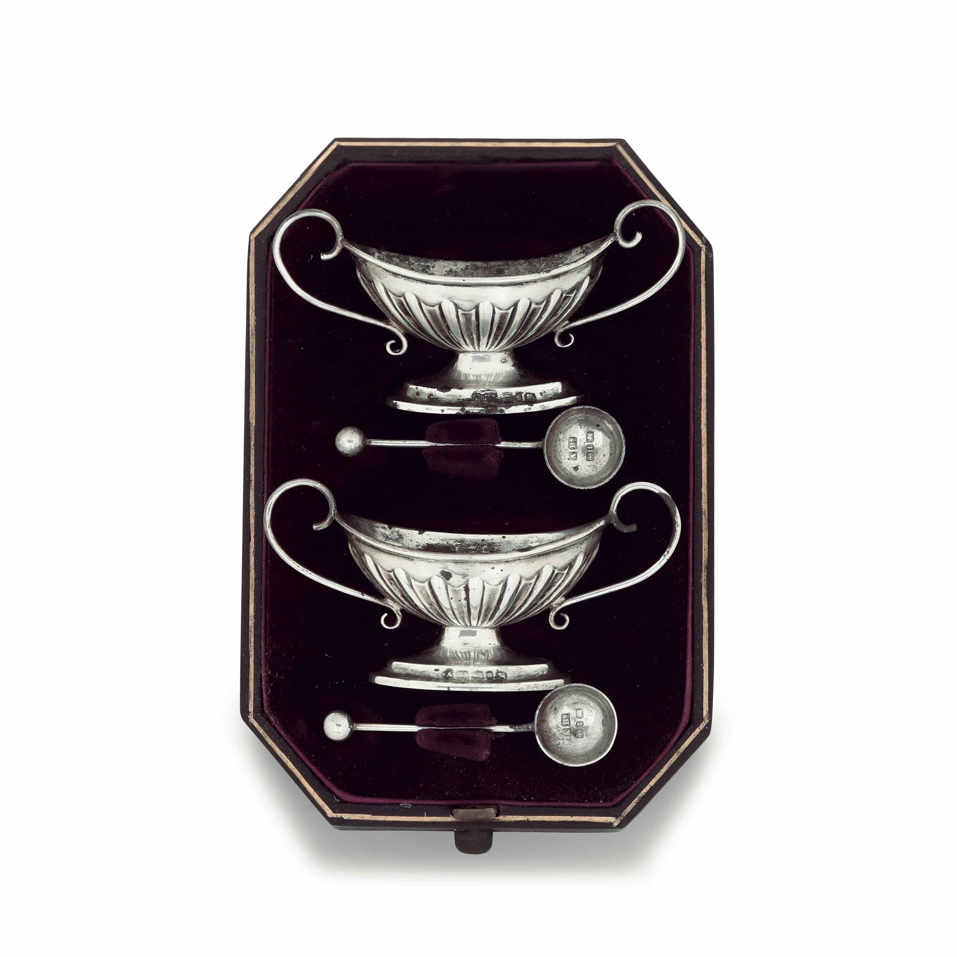 Coppia di salierine. Argento fuso, sbalzato e cesellato. Birmingham 1892 e 1893. [..]