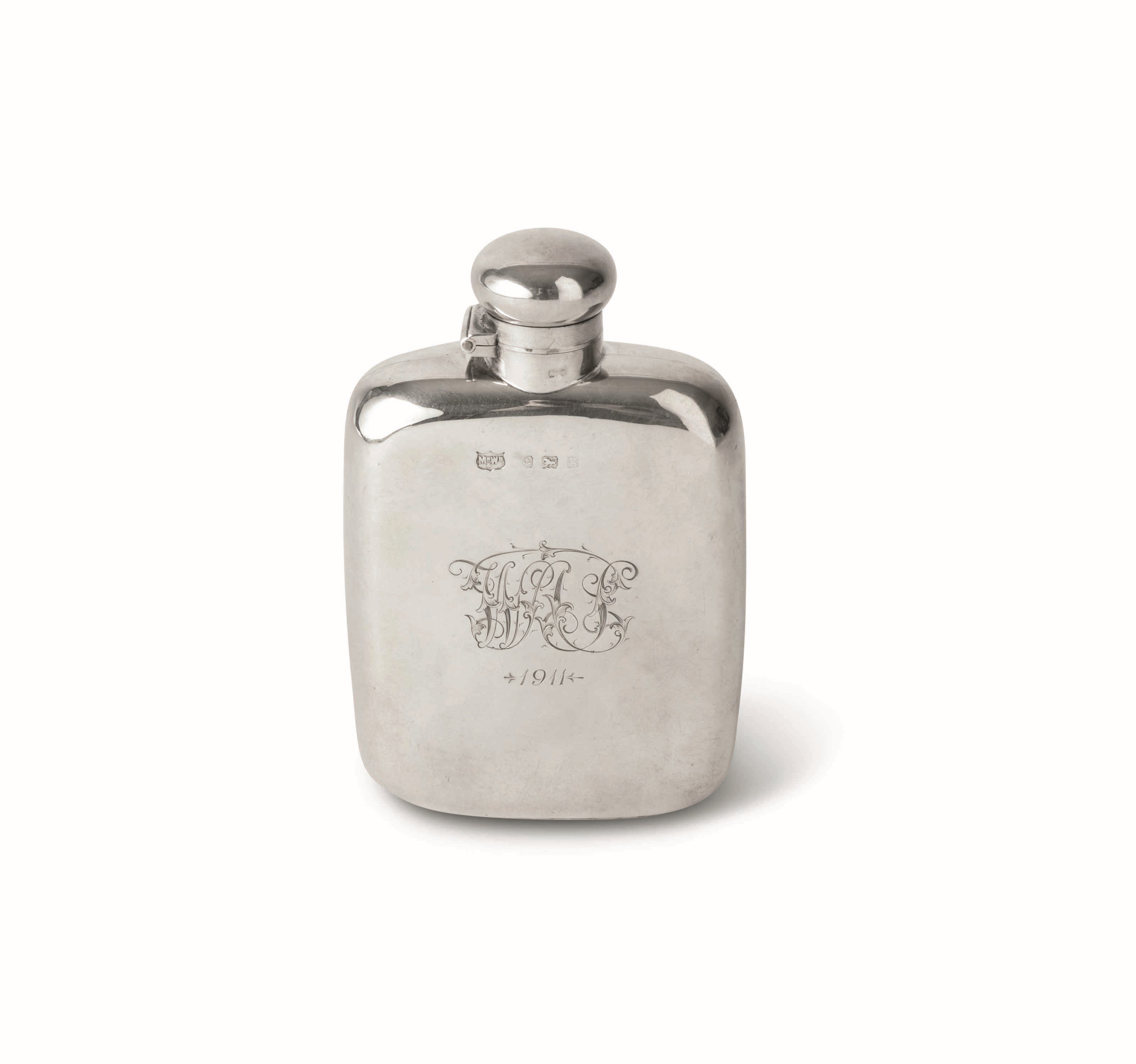Fiaschetta da whisky. Argento sterling fuso, sbalzato e cesellato. Marchio della [..]