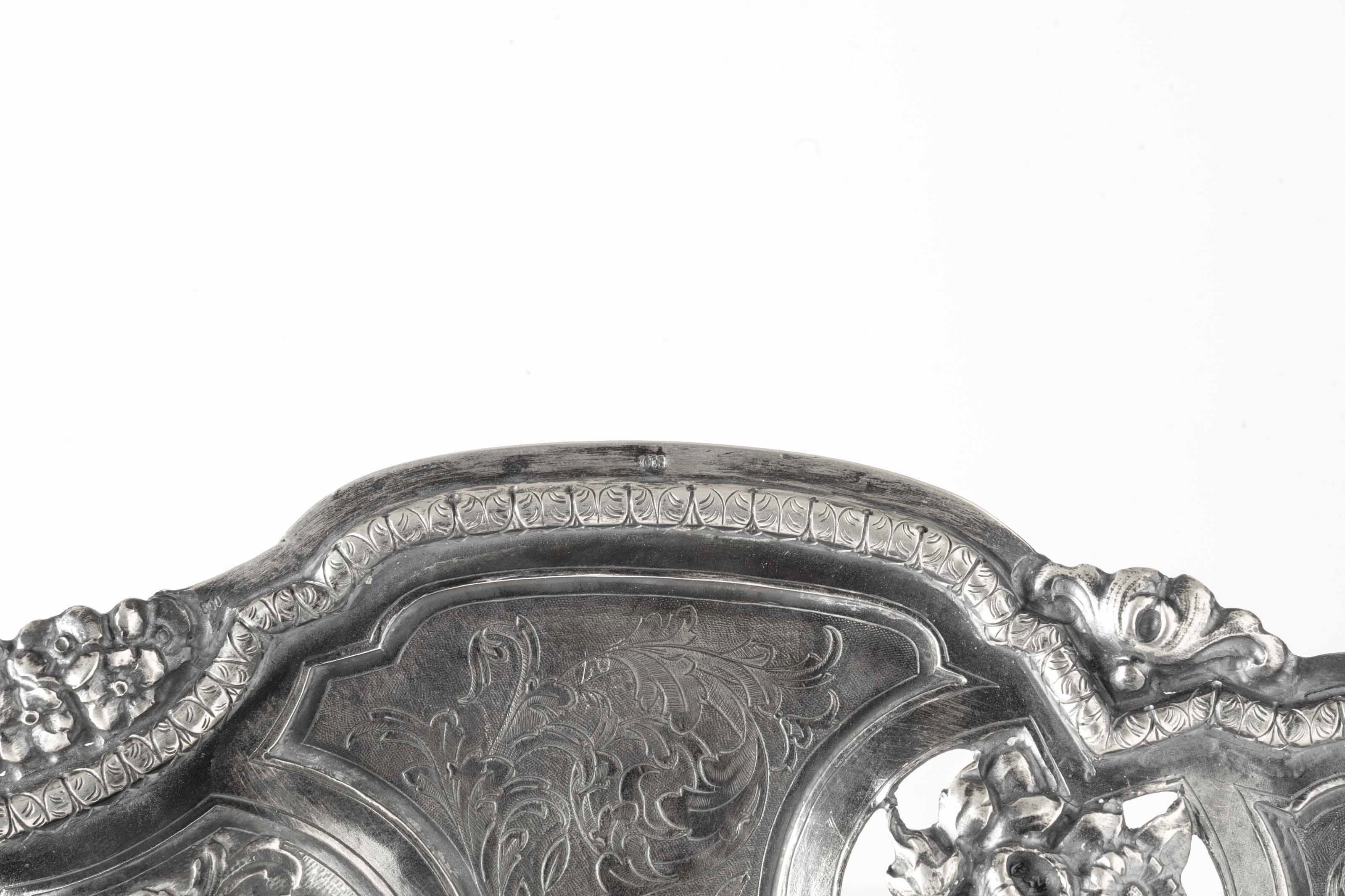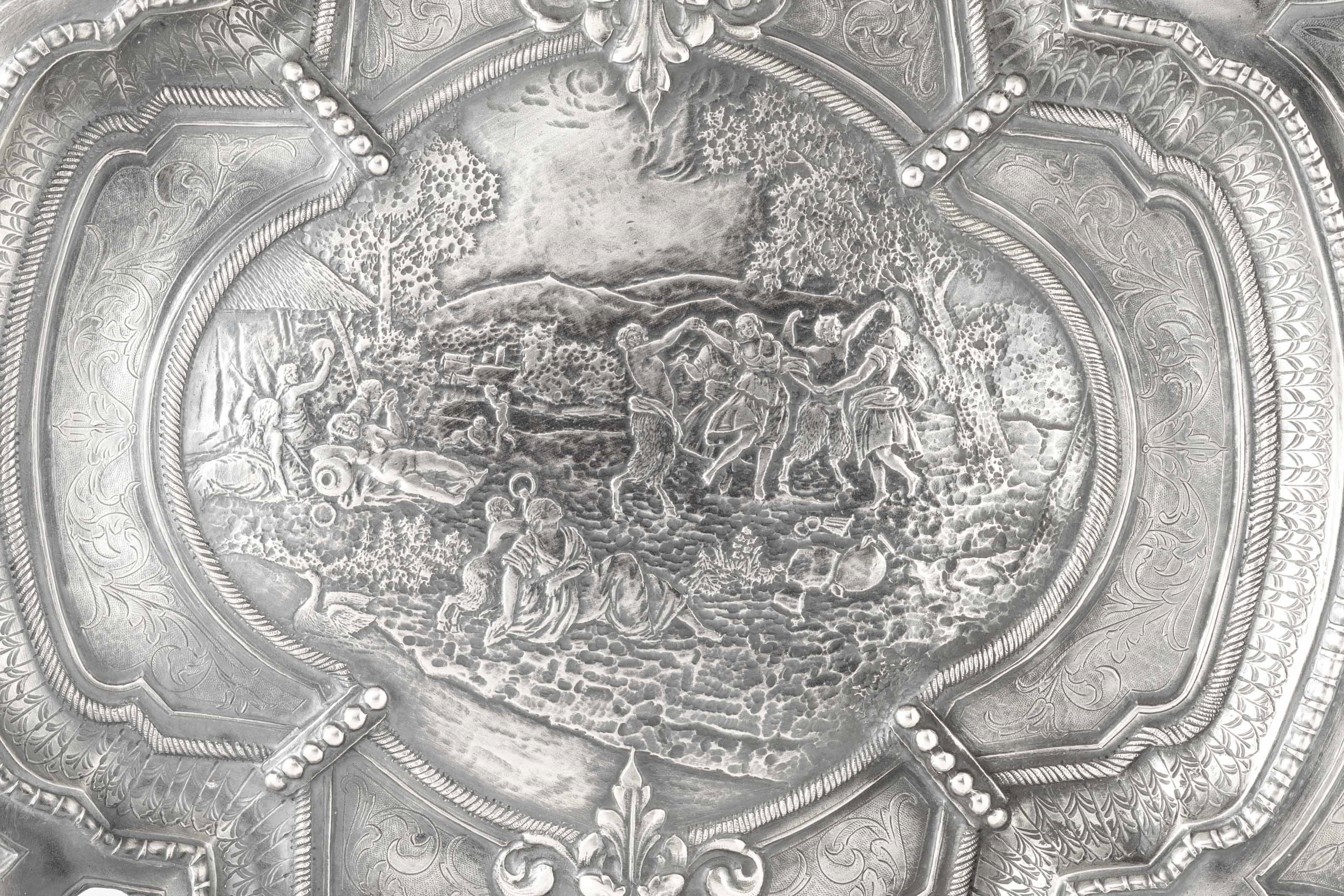 Grande piatto da parata circolare sagomato. Argento fuso,sbalzato e finemente cesellato. [..]