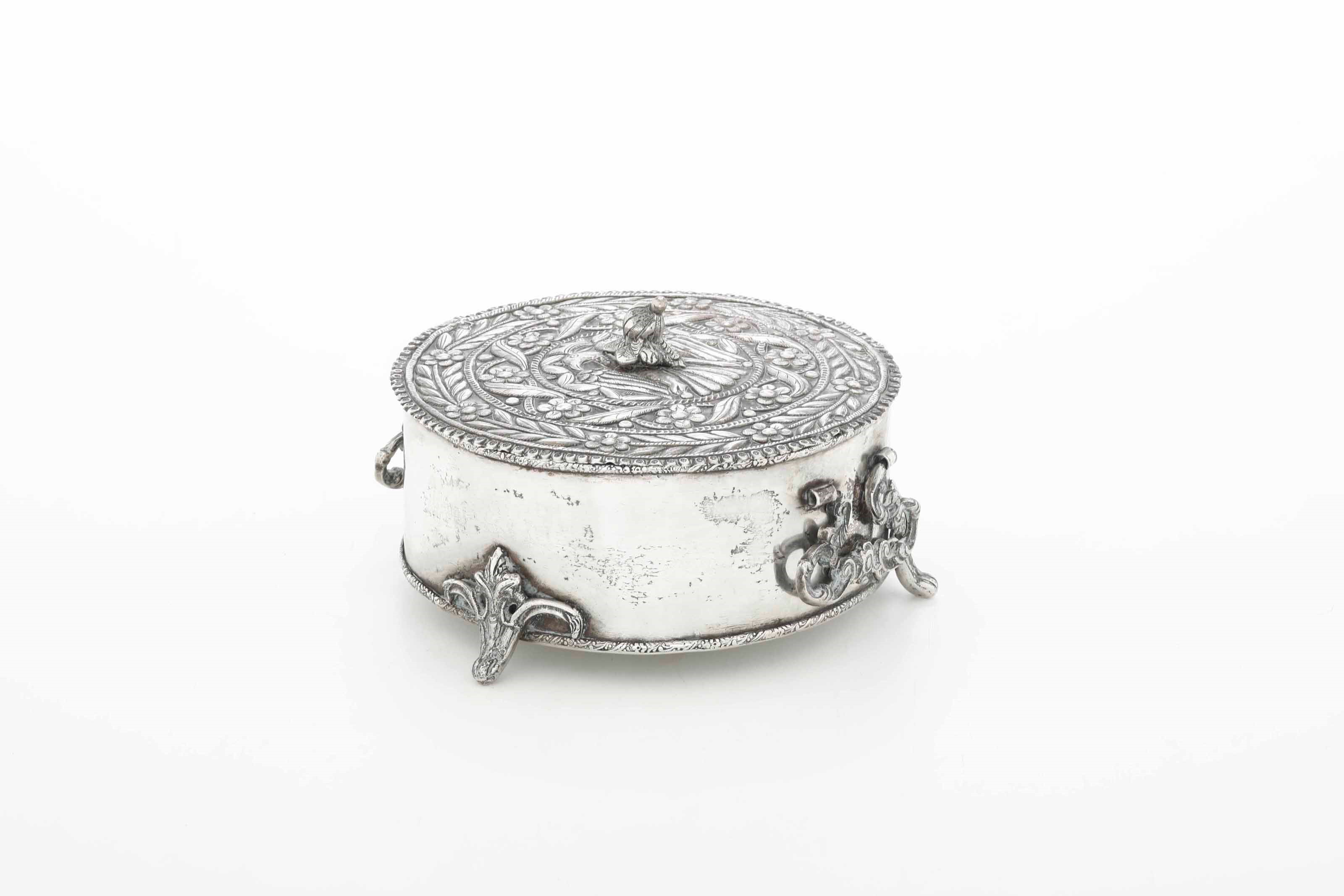 Scatola. Argento fuso, sbalzato e cesellato. Arte coloniale del XIX secolo