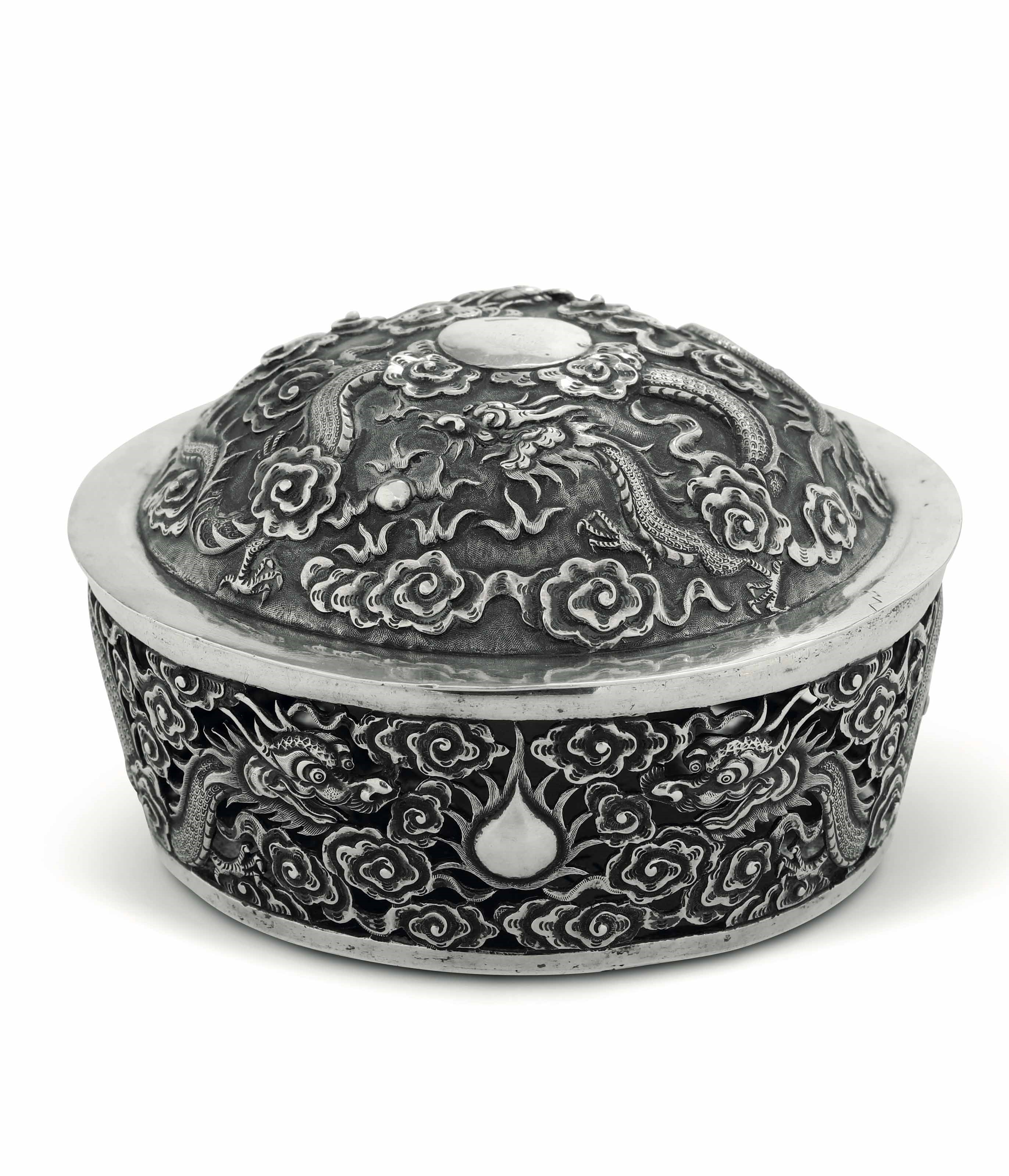 Scatola porta essenze. Argento fuso, sbalzato, traforato e cesellato. Cina XX secolo, [..]