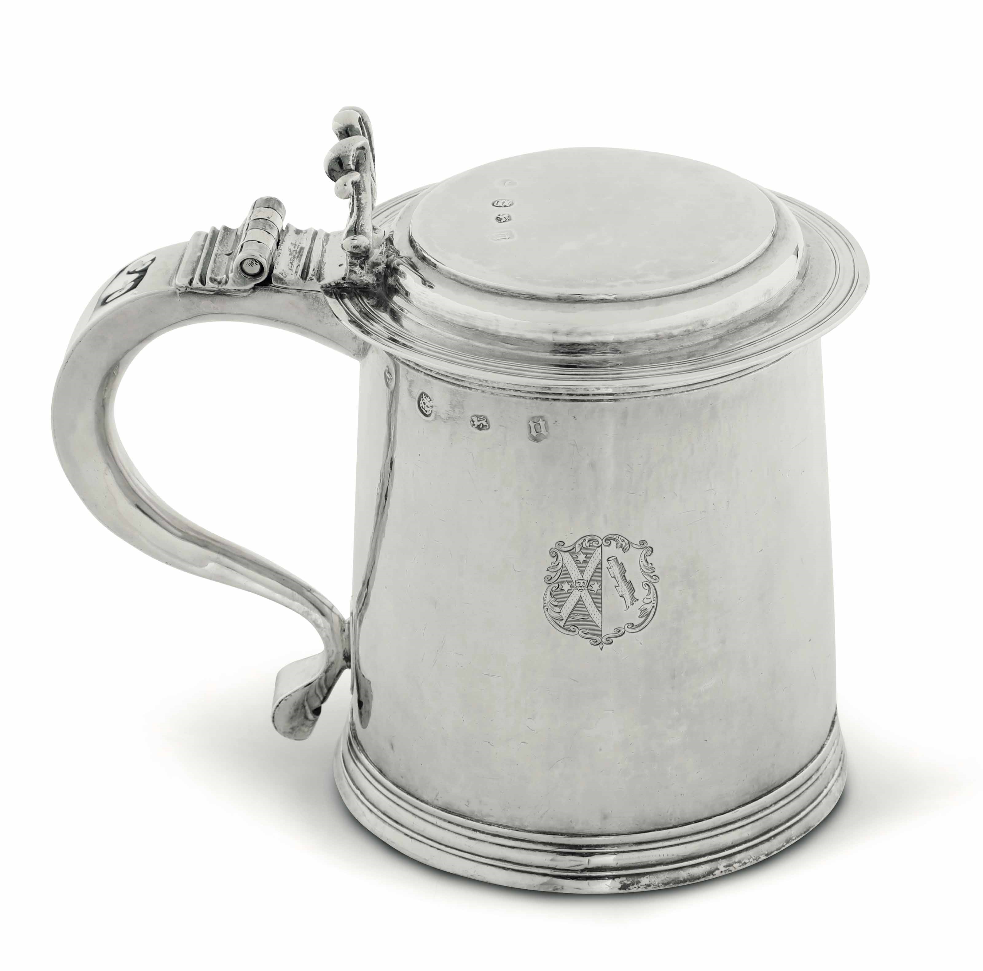 Tankard in argento fuso, sbalzato e cesellato. Londra XVII secolo (?) marchio dell'argentiere [..]