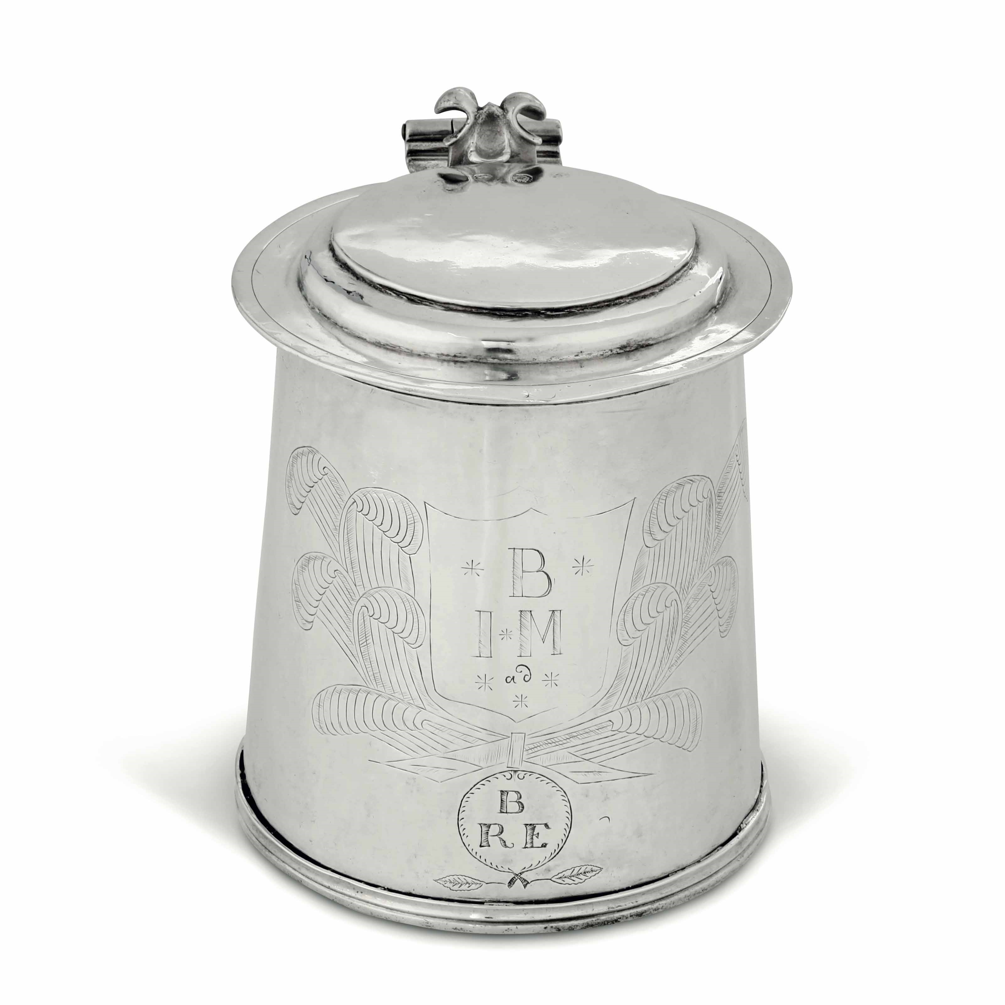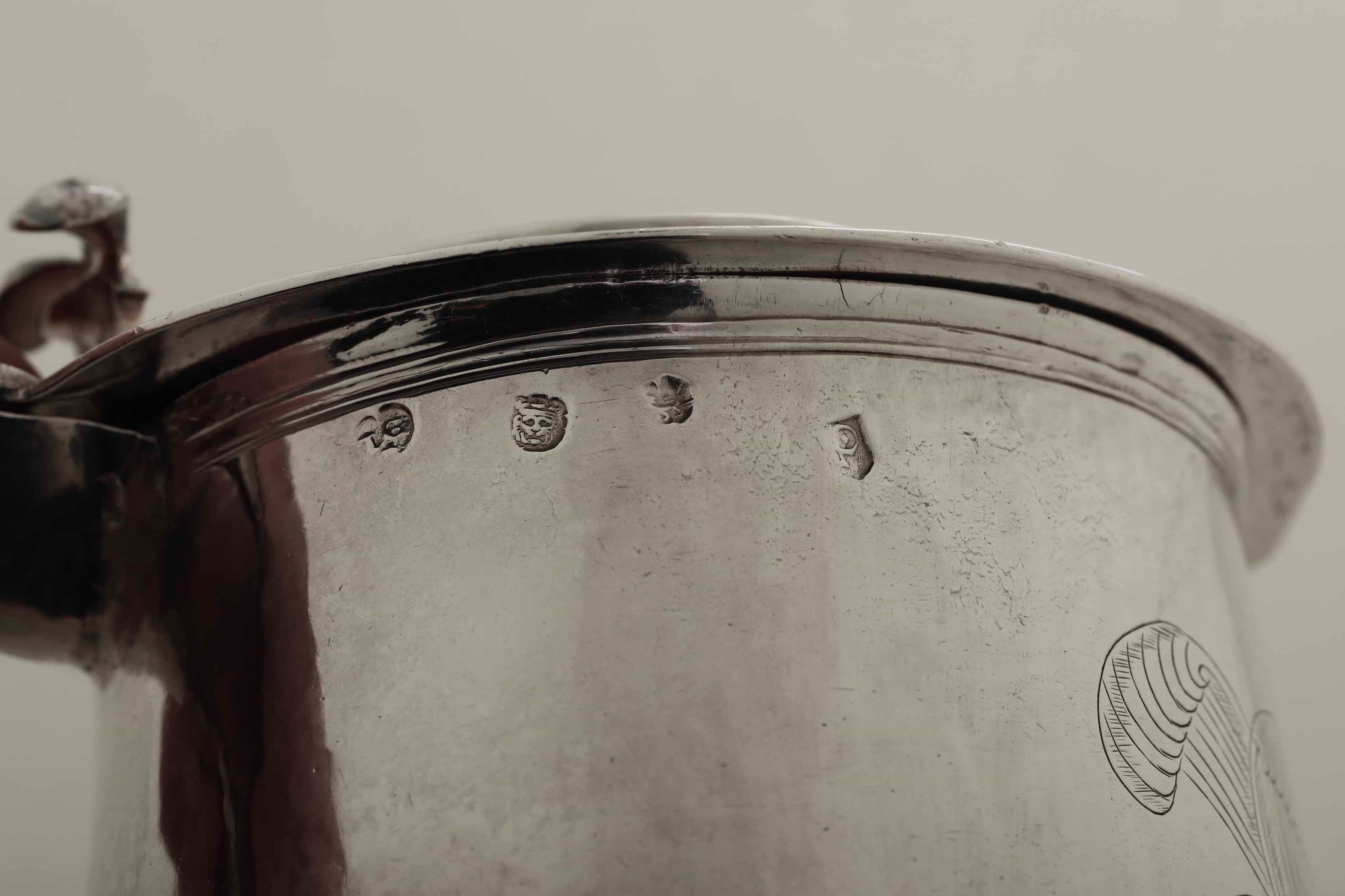 Tankard in argento fuso, sbalzato e cesellato. Londra 1672, marchio dell'argentiere [..]