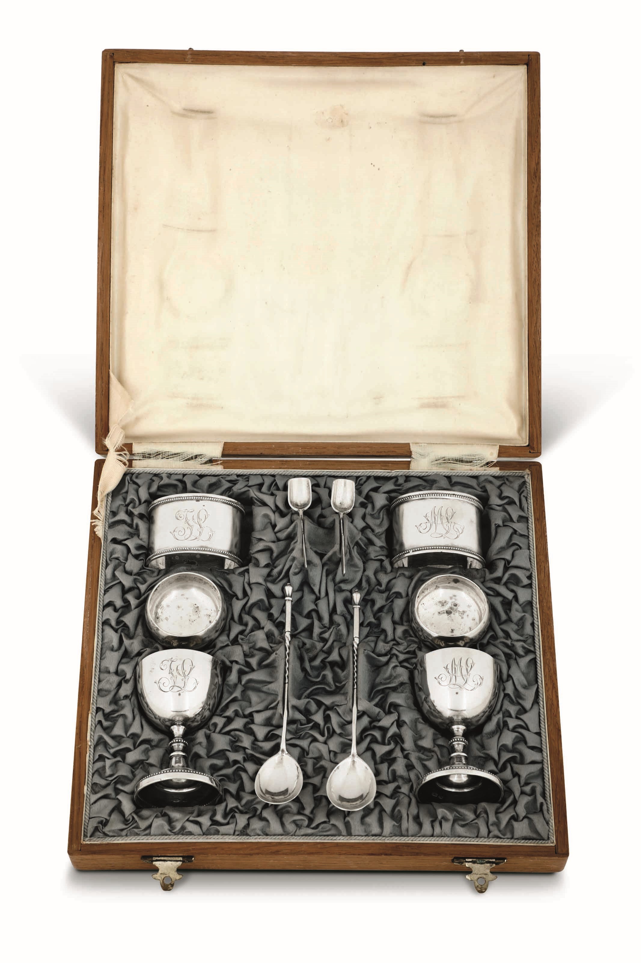 Tete à tete con portauovo. Argento fuso, sbalzato e cesellato. Russia 1908-1917