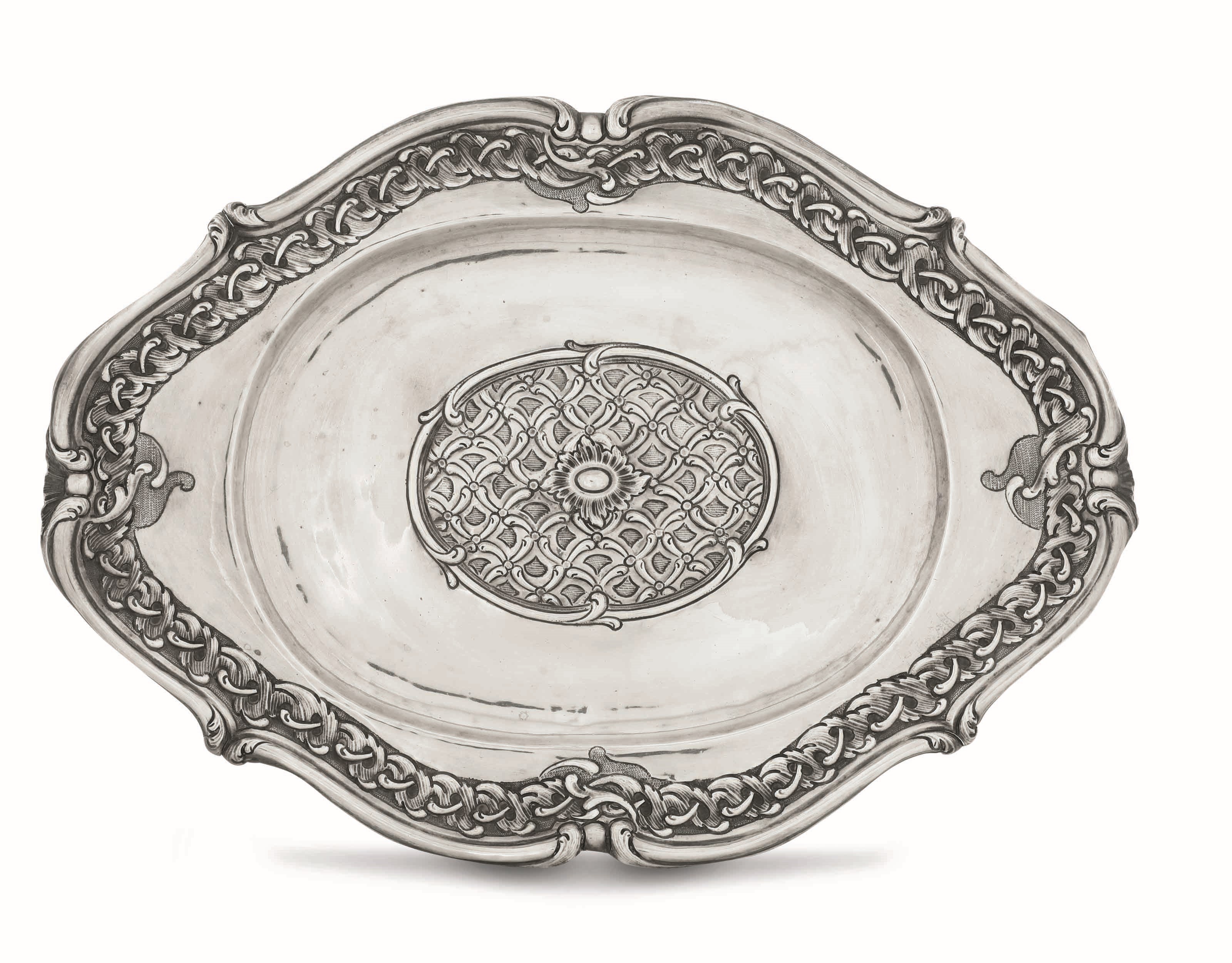 Vassoio. Argento fuso, sbalzato e cesellato. Marchi della città di Torino. Assaggiatore [..]