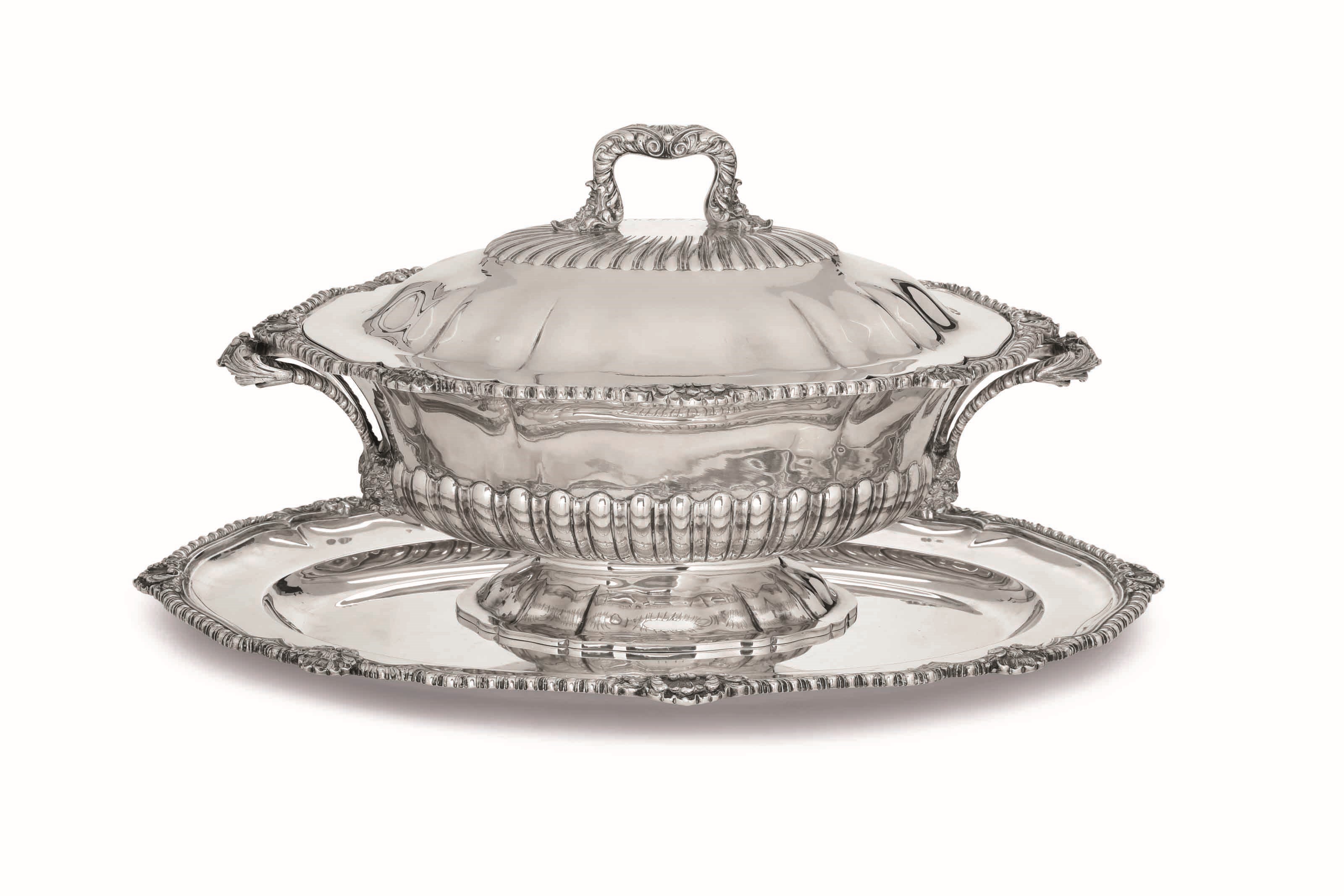 Zuppiera con présentoir. Argento 925 fuso, sagomato e cesellato. Argenteria artistica [..]