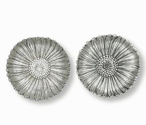 Due segnaposti a girasole. Argento fuso e sagomato. Argenteria artistica italiana [..]