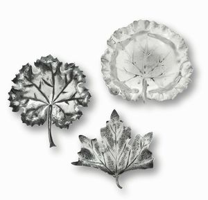 Tre segnaposti a foglia. Argento fuso e sagomato. Argenteria artistica italiana [..]