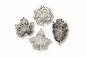 Quattro segnaposti a foglia. Argento 925 fuso e sagomato. Argenteria artistica italiana [..]