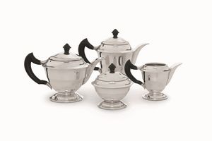 Servizio da tè e caffè. Argento fuso, sagomato ed ebanizzato. Argenteria artistica [..]