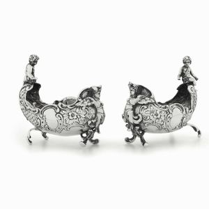 Coppia di salsiere. Argento fuso, sbalzato e cesellato. Germania, Hanau, XIX-XX [..]
