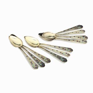 Dieci cucchiaini. Argento vermeille e smalti colorati. Russia metà del XX secolo
