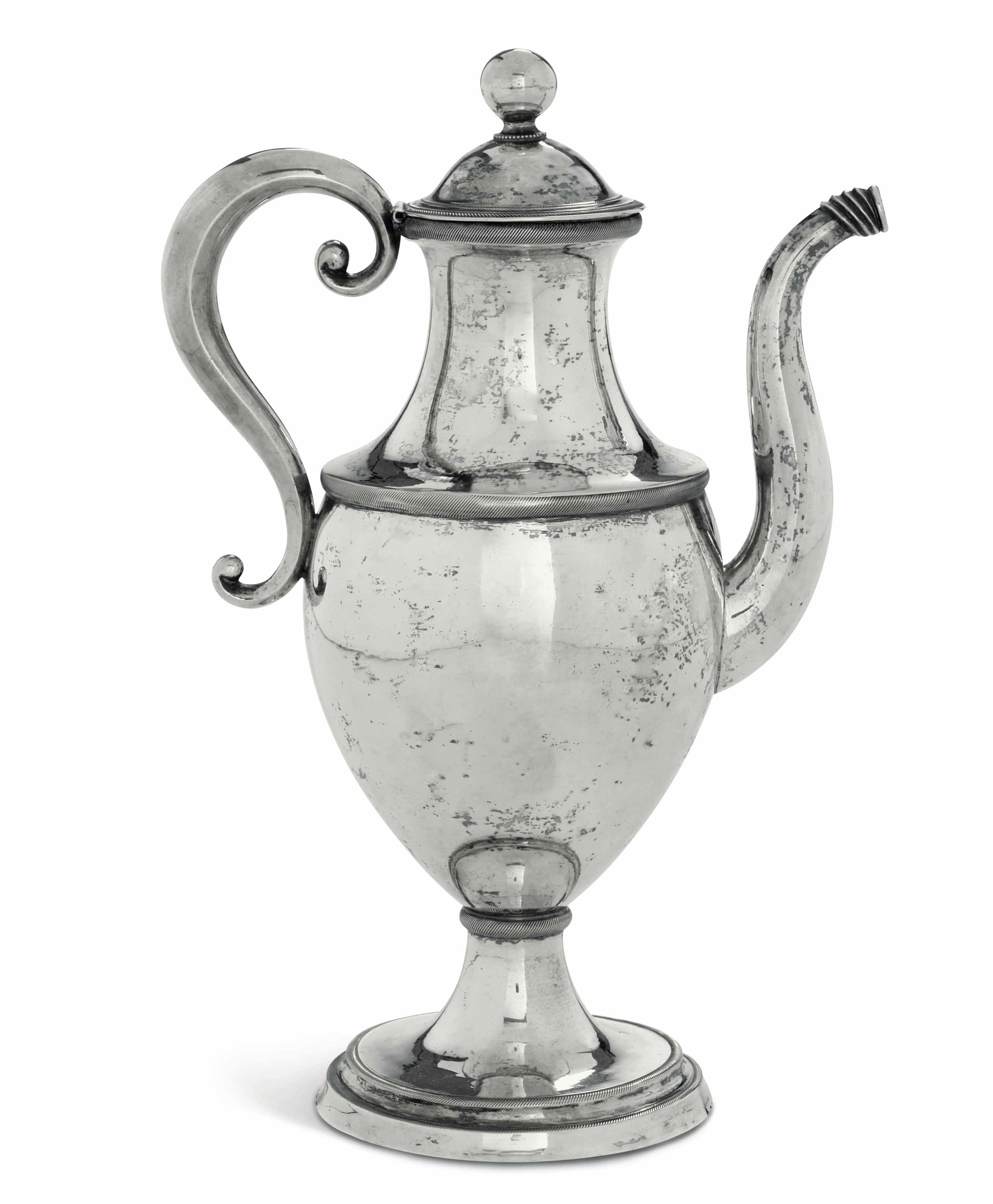 Caffettiera. Argento fuso e cesellato. Argenteria italiana del XIX secolo