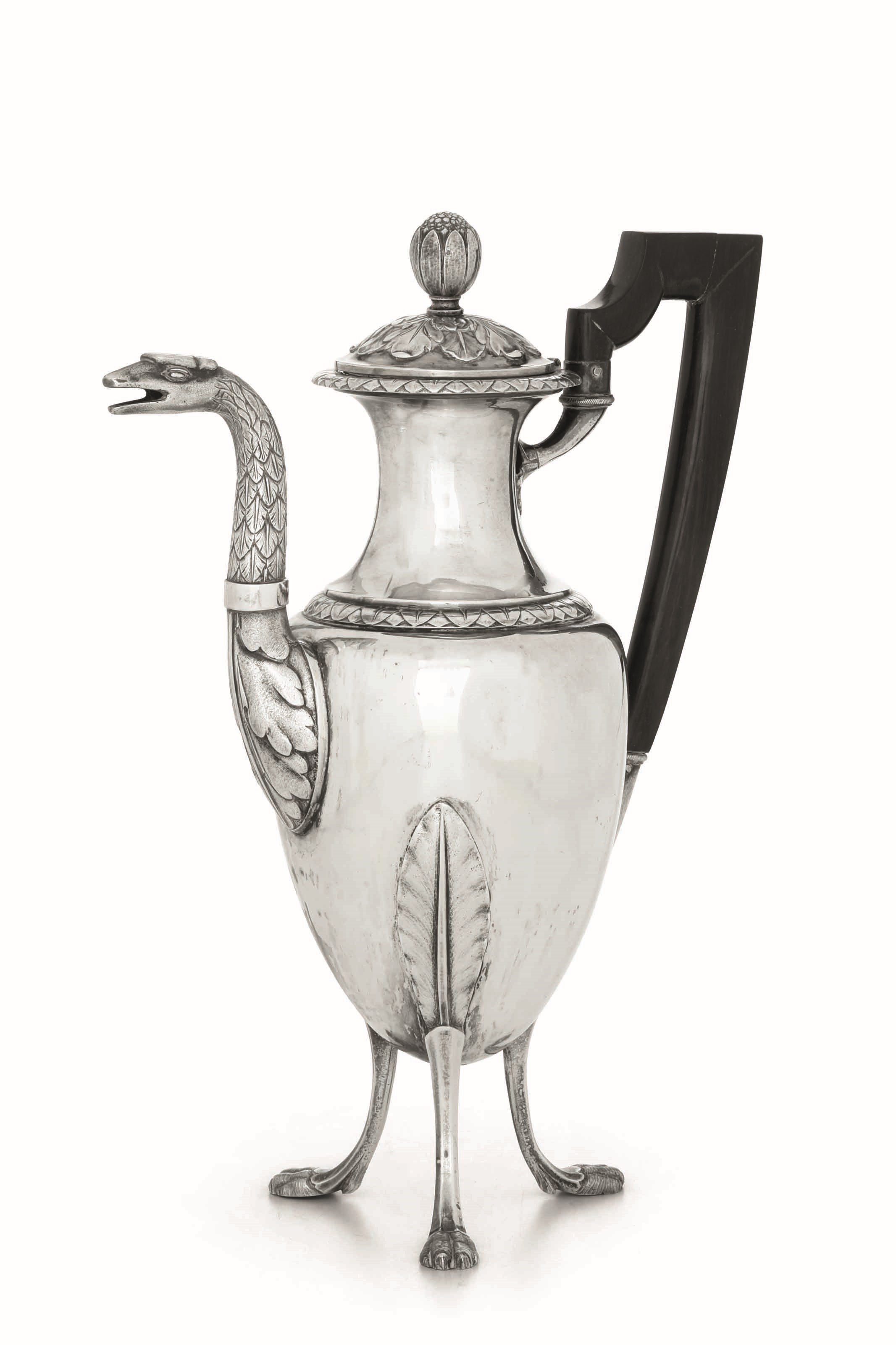 Caffettiera. Argento fuso, sbalzato e cesellato. Italia o Francia XIX secolo