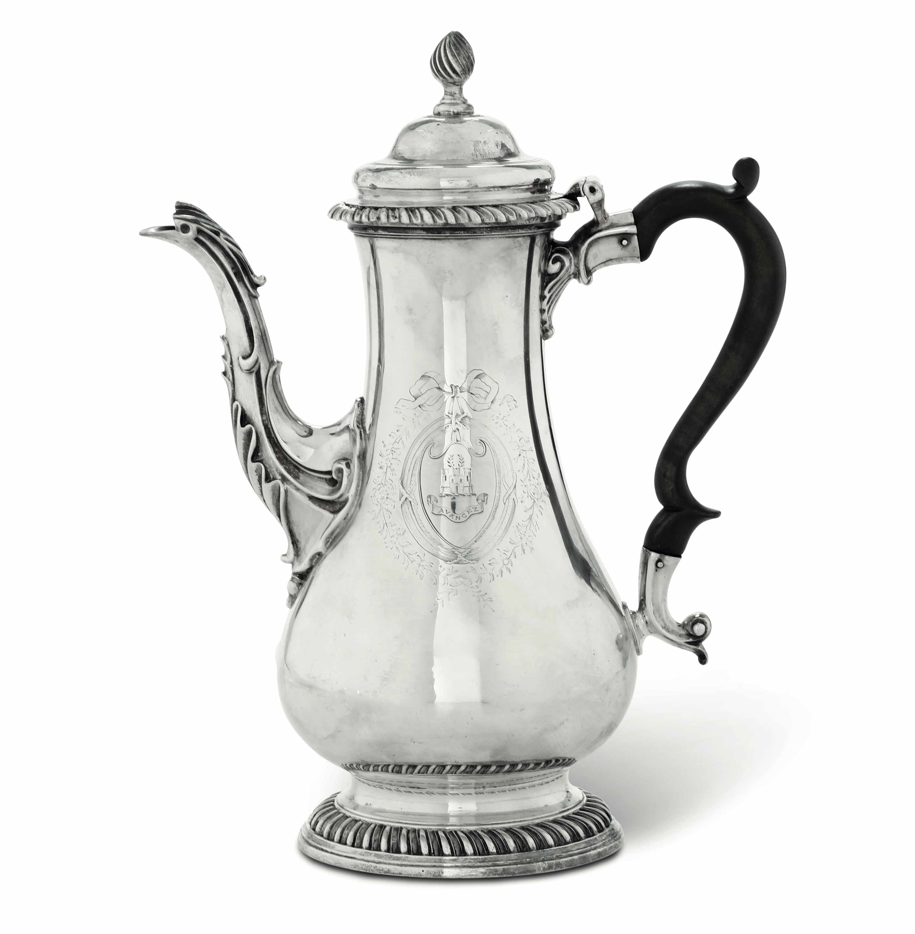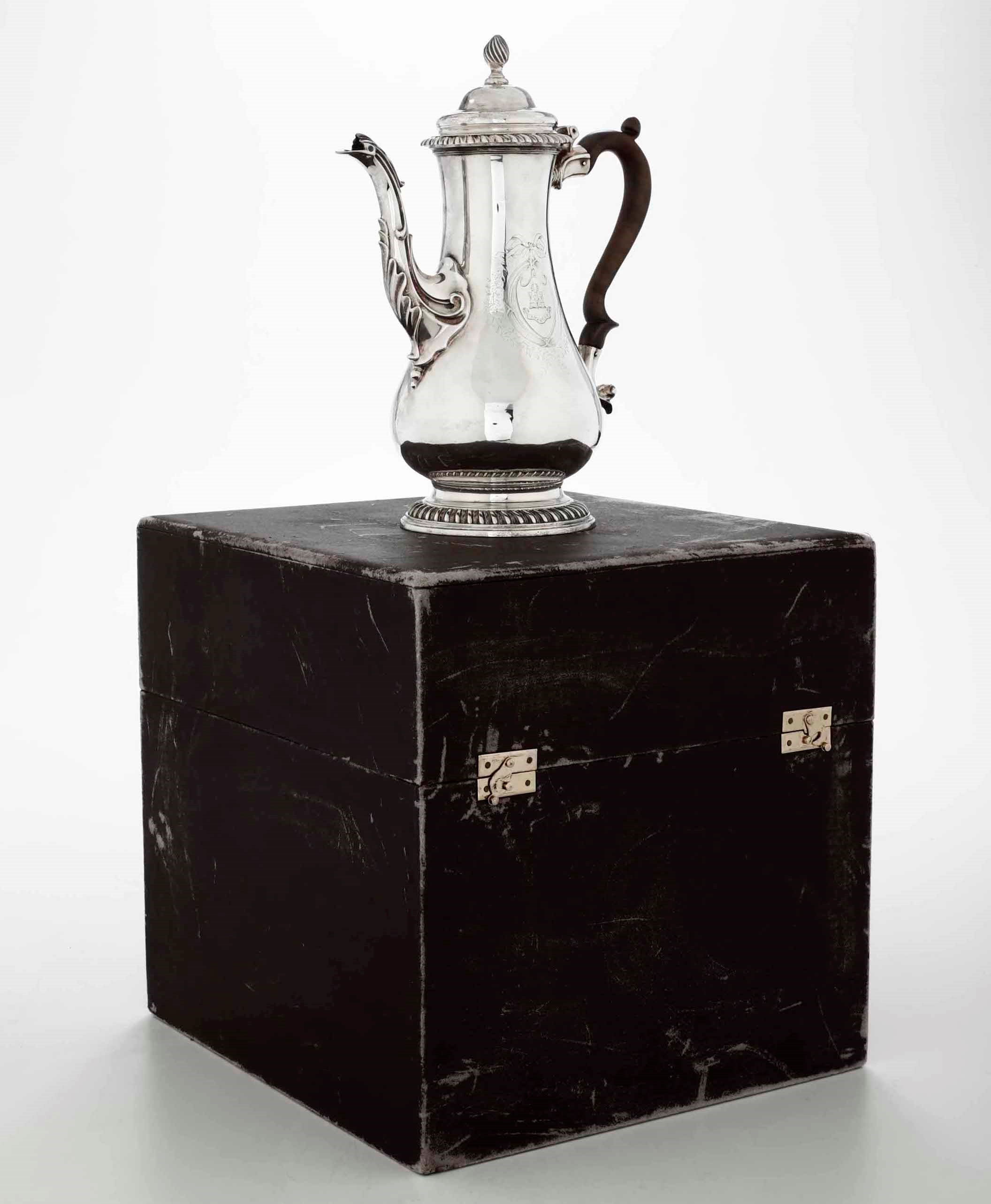 Caffettiera in argento sterling fuso, sbalzato e cesellato. Marchi della città di [..]