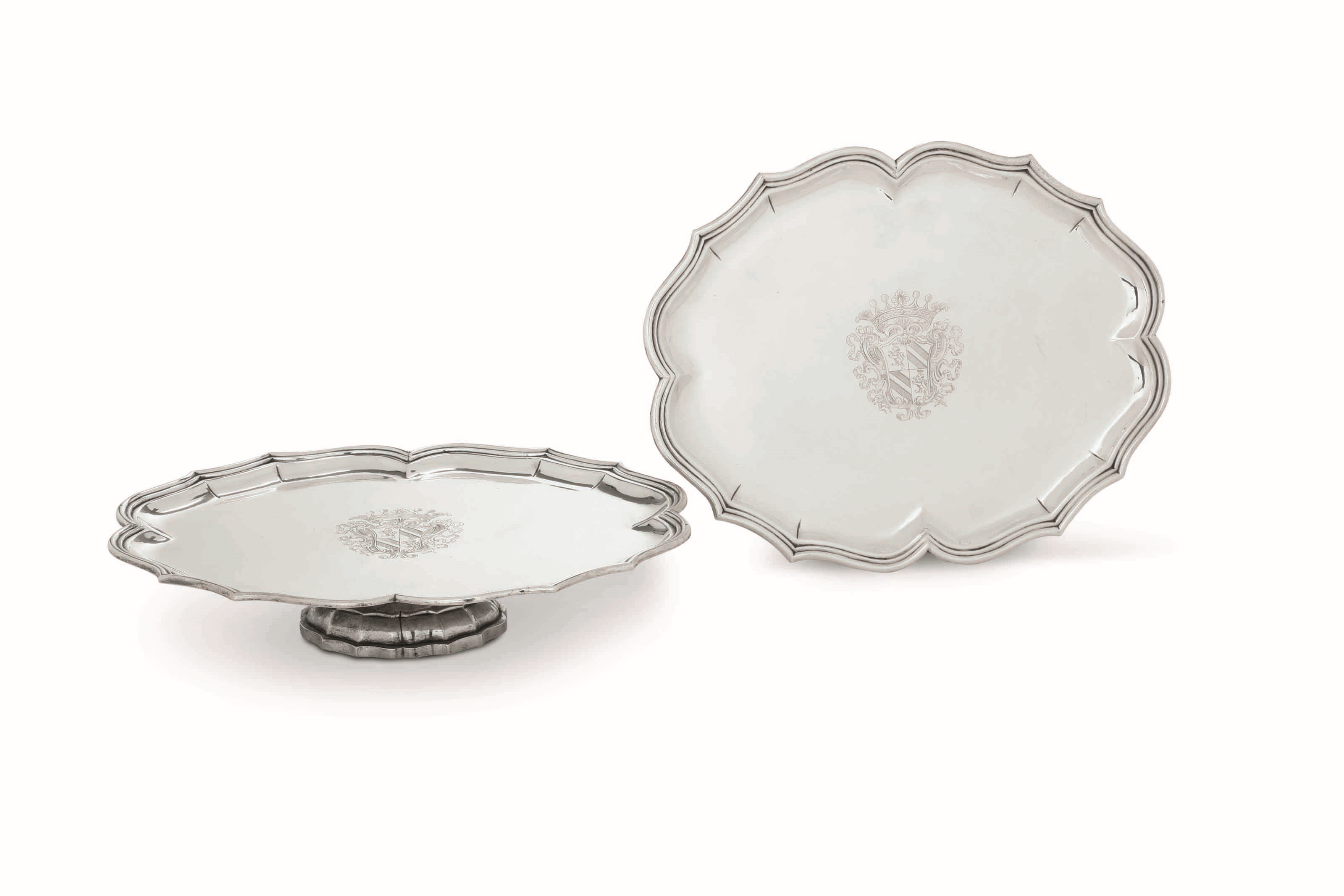Coppia di alzate. Argento fuso, sbalzato e cesellato. Probabile manifattura veneta, [..]