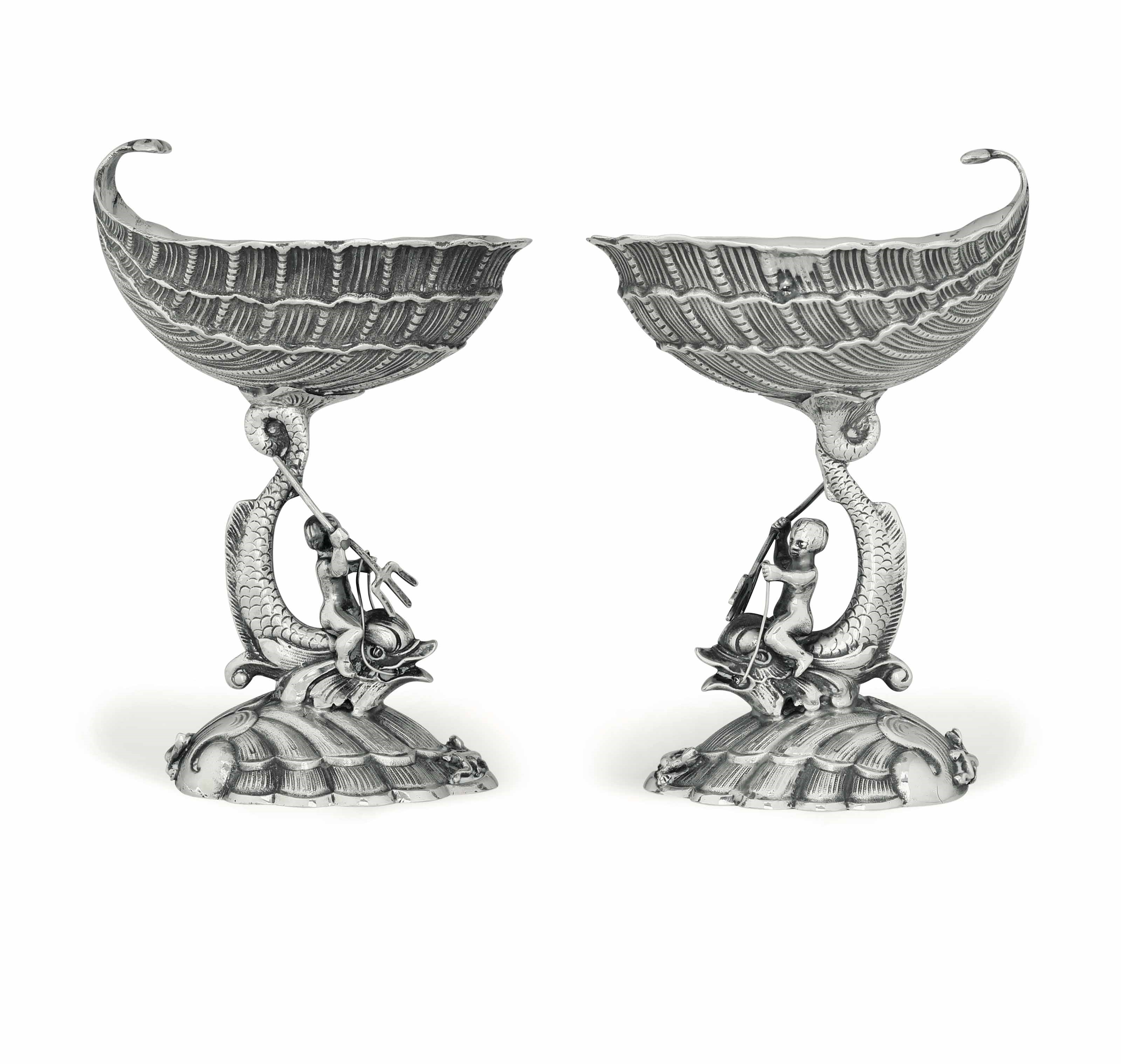 Coppia di alzate. Argento fuso, sbalzato e cesellato. Manifattura europea (Hanau?) [..]
