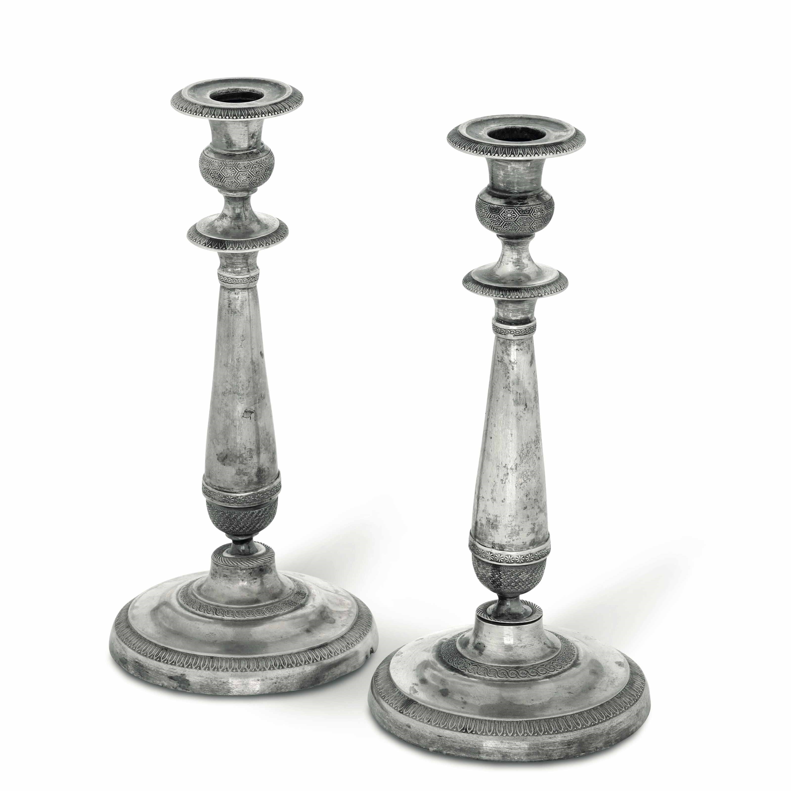 Coppia di candelieri. Argento fuso e sagomato. Genova XIX secolo. Marchi con croce [..]