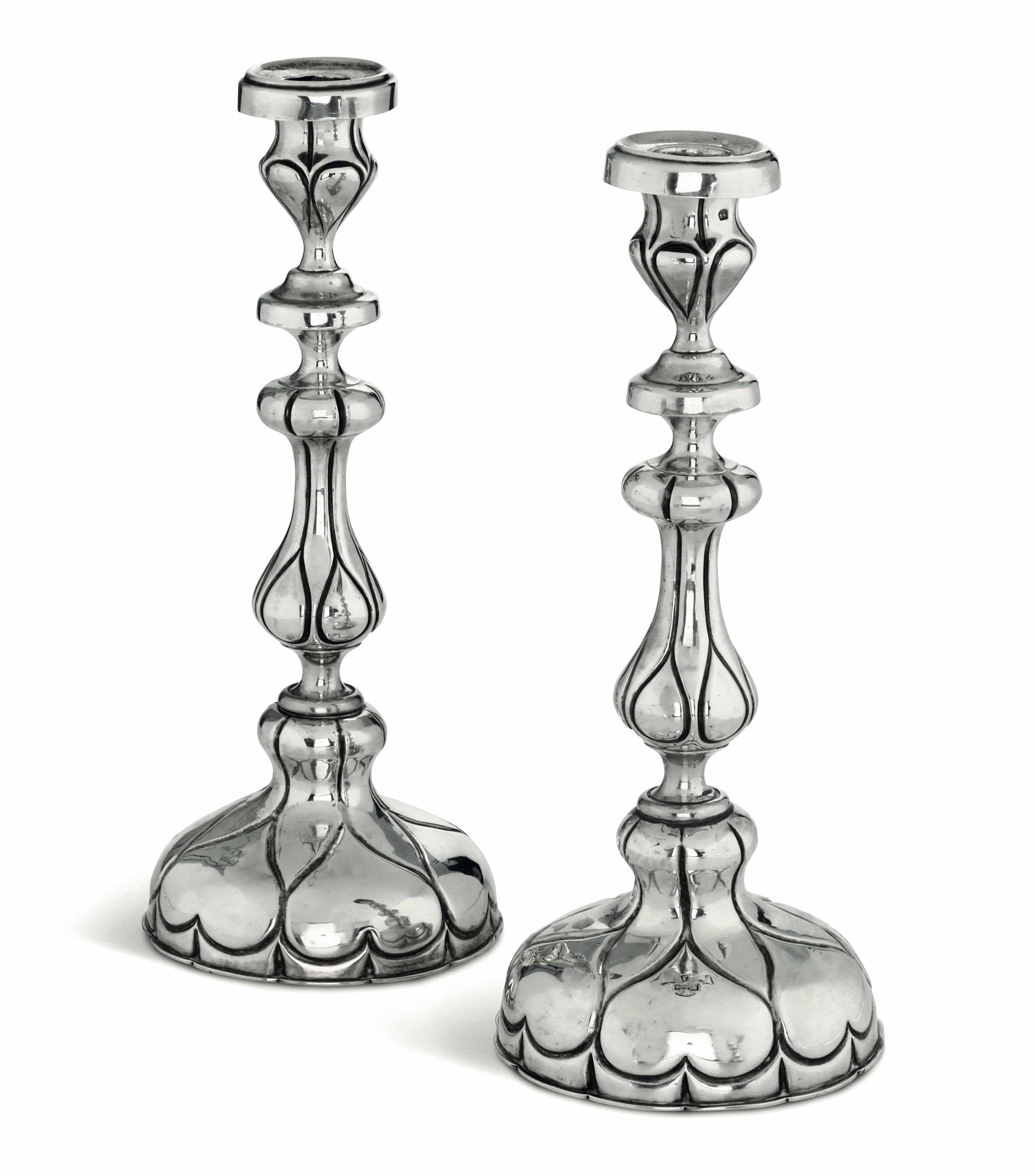 Coppia di candelieri. Argento fuso e sbalzato. Mosca 1876. Assaggiatore Viktor Savinkov, [..]