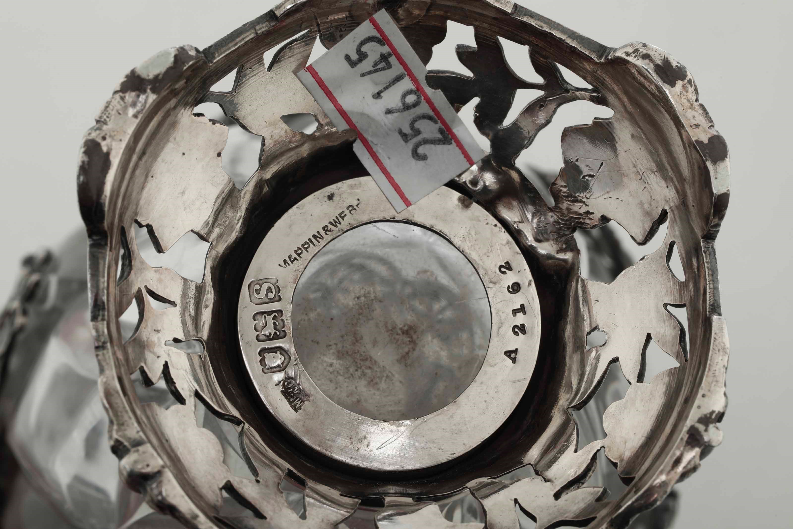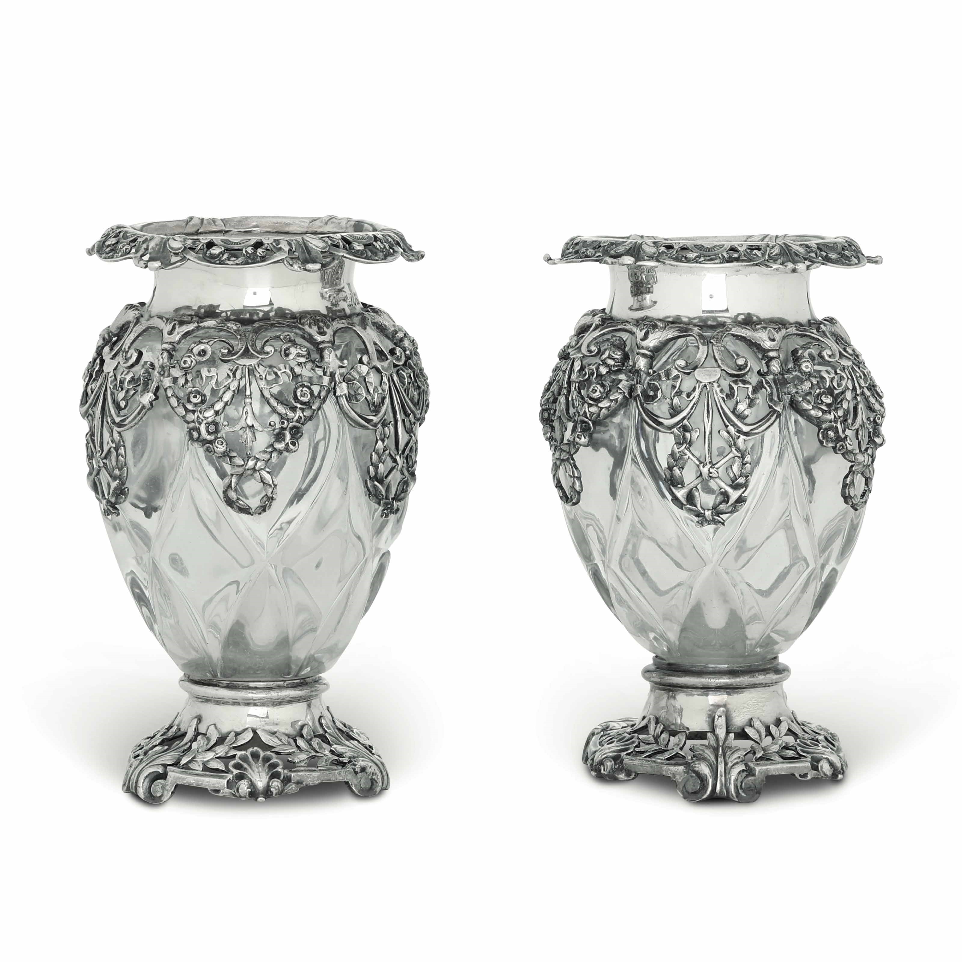Coppia di vasi. Argento fuso, traforato e cesellato e vetro molato. Londra 1913. [..]