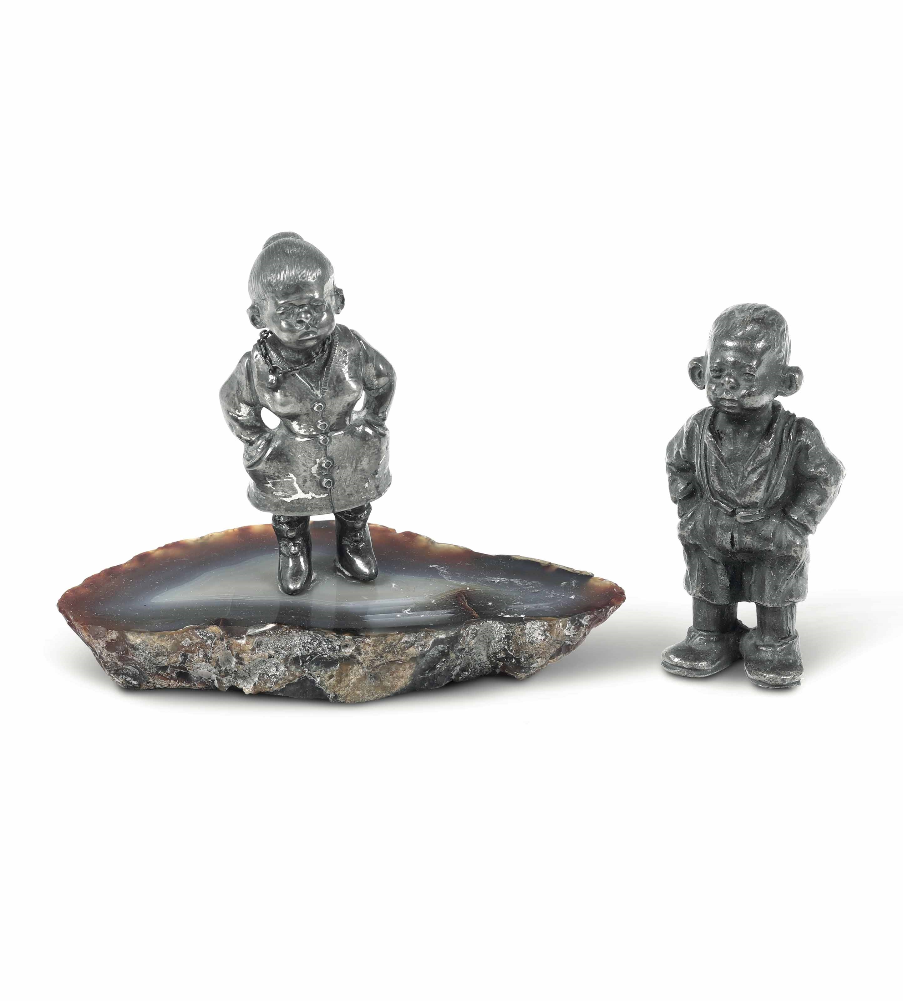 Due figure caricaturali di cui una in argento con base in pietra dura. Argenteria [..]
