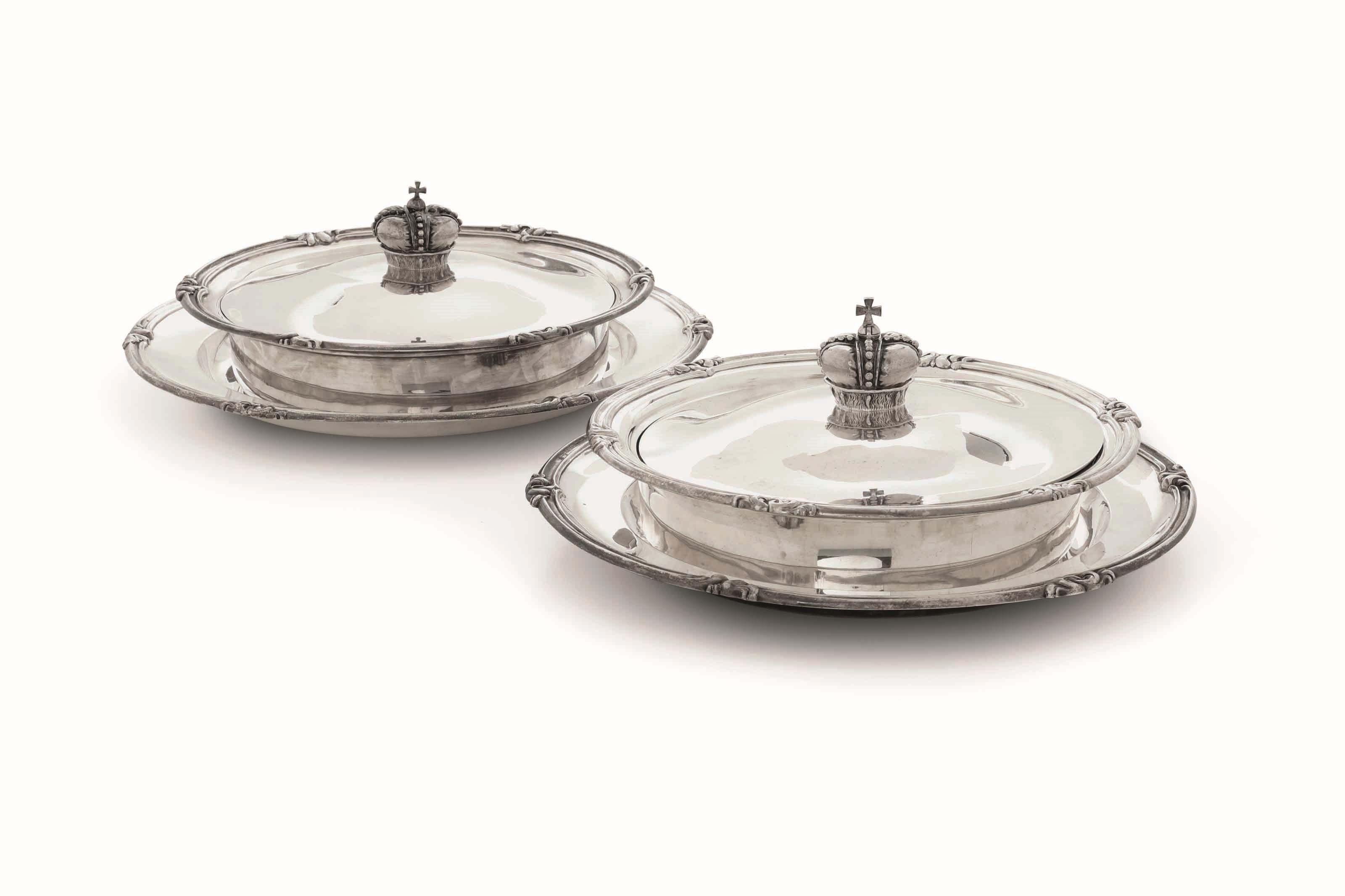 Due importanti legumiere con présentoir. Argento fuso, sbalzato, cesellato e dorato. [..]
