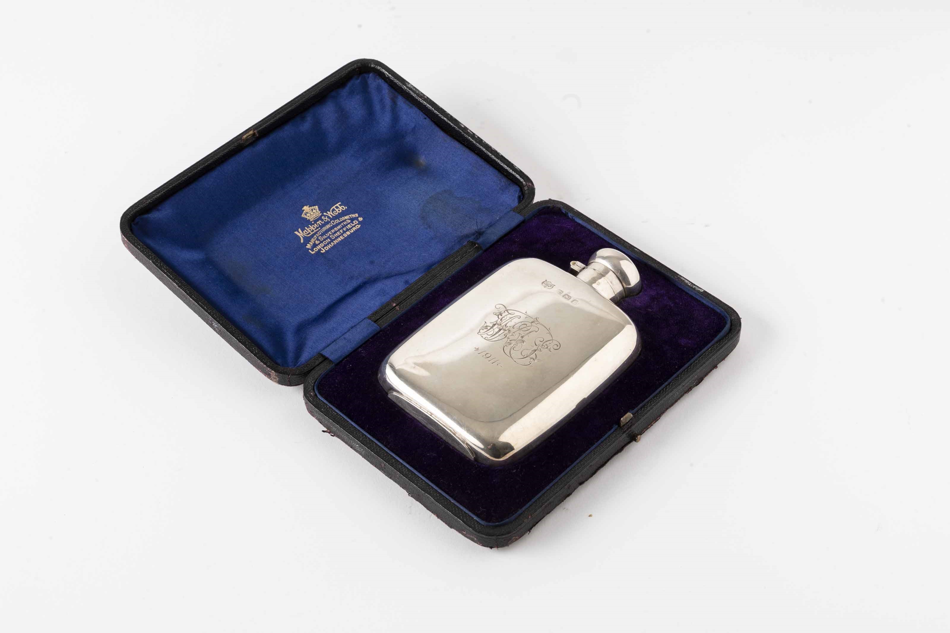 Fiaschetta da whisky. Argento sterling fuso, sbalzato e cesellato. Marchio della [..]