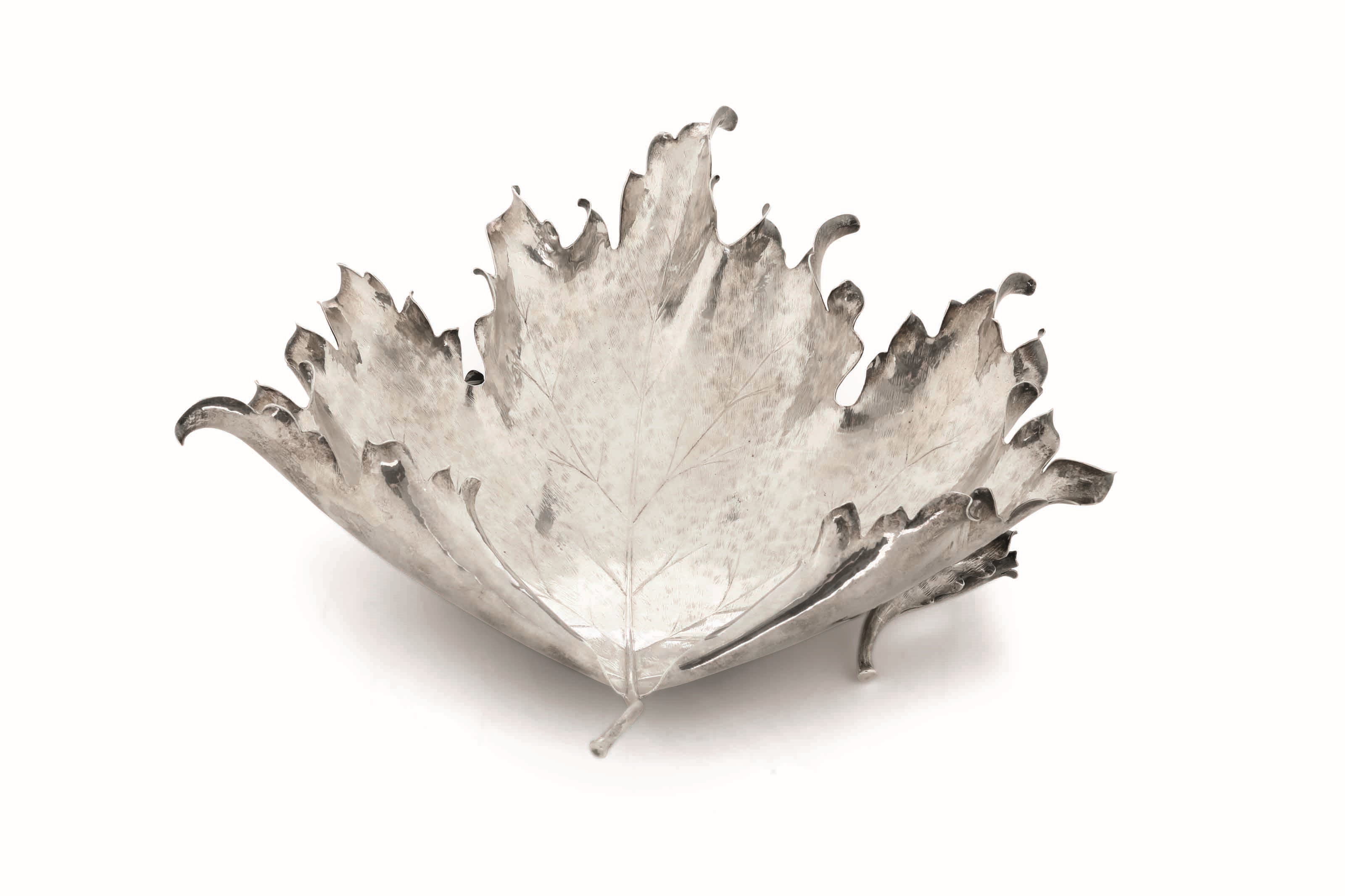 Grande centrotavola a forma di foglia. Argento 925. Argenteria artistica milanese [..]