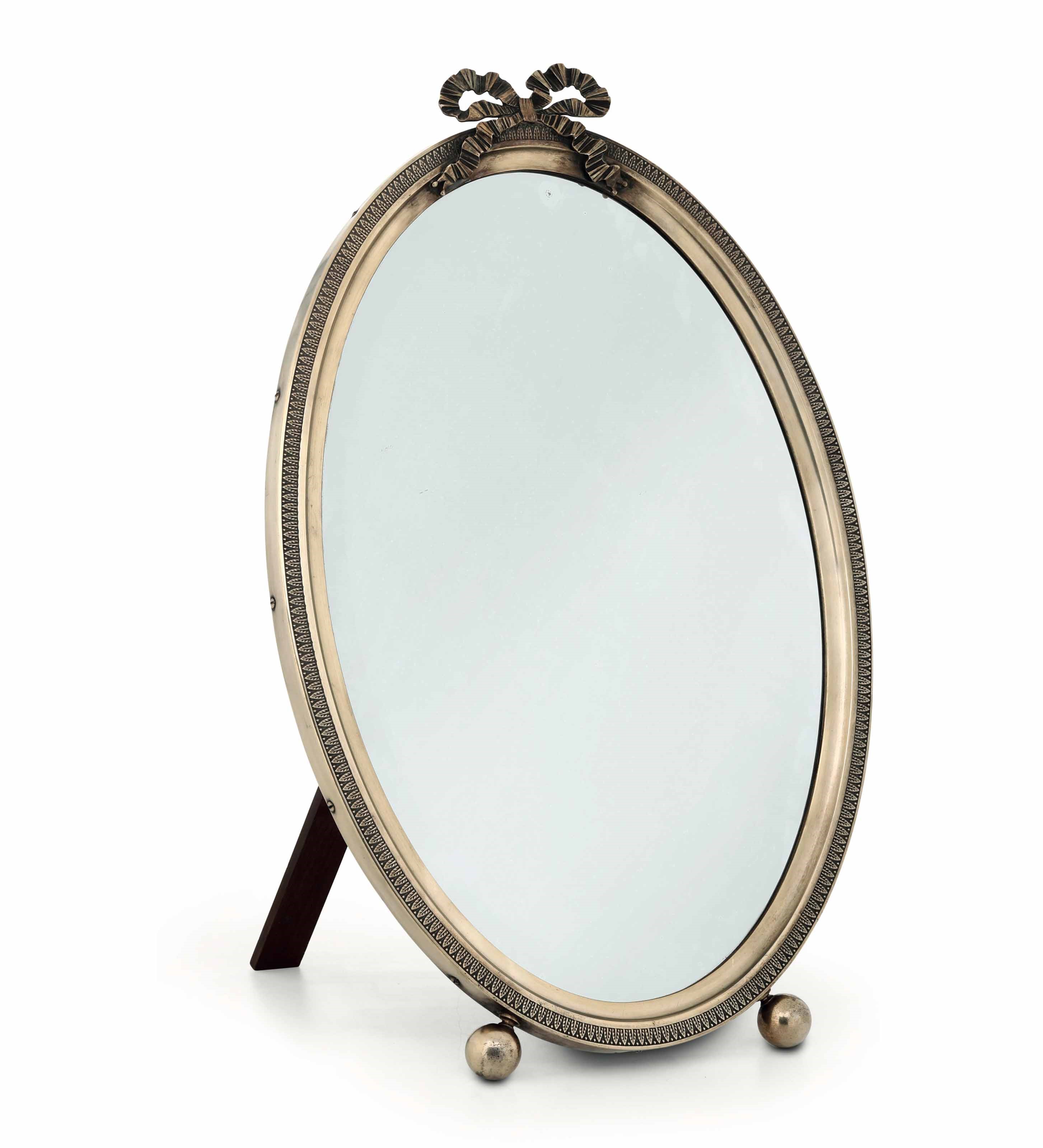 Grande specchio da toelette in argento fuso e dorato. Manifattura europea (Francia?) [..]