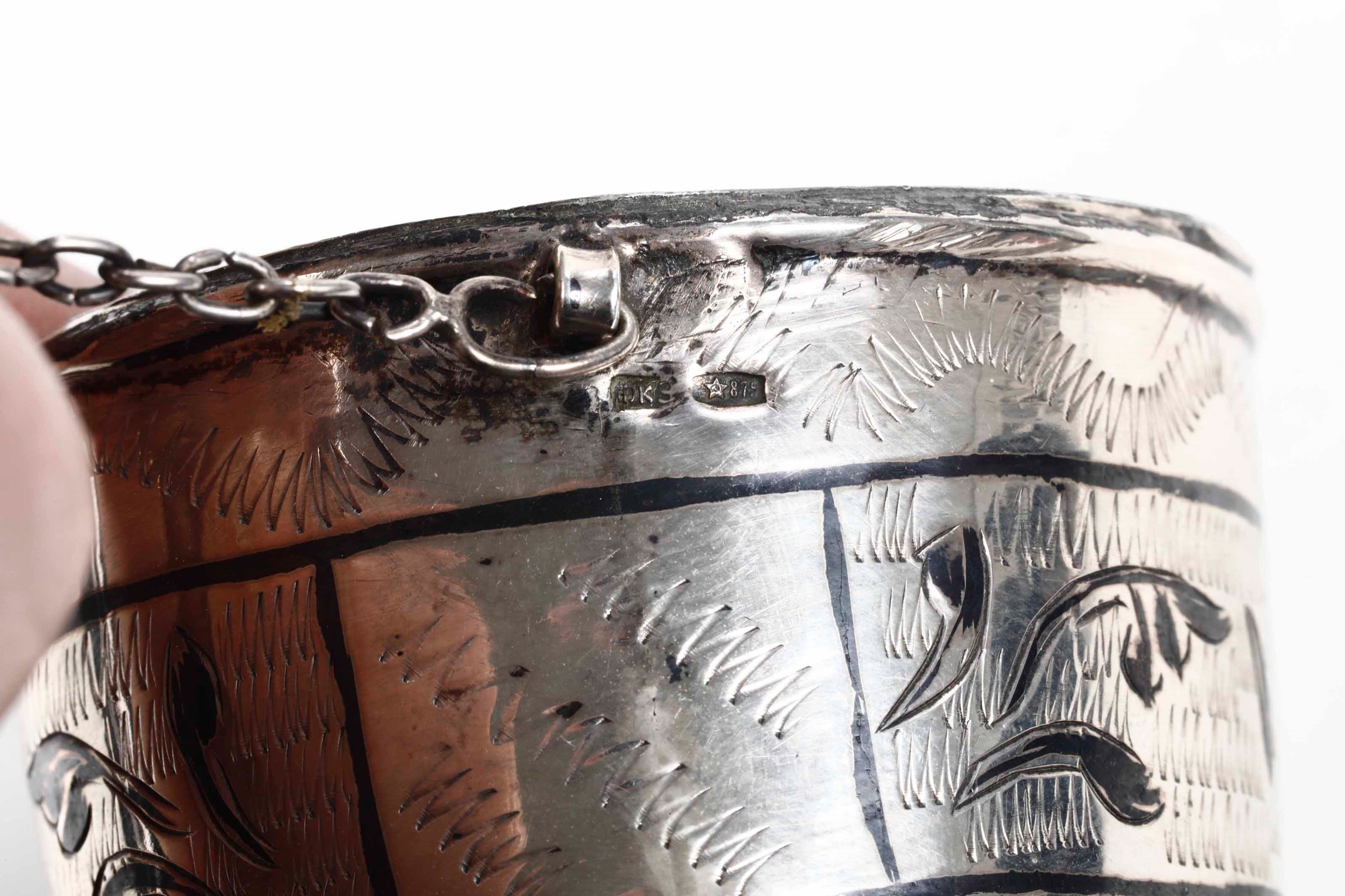 Insieme di otto corni potori Corno animale e finimenti in argento sagomato e ces [..]
