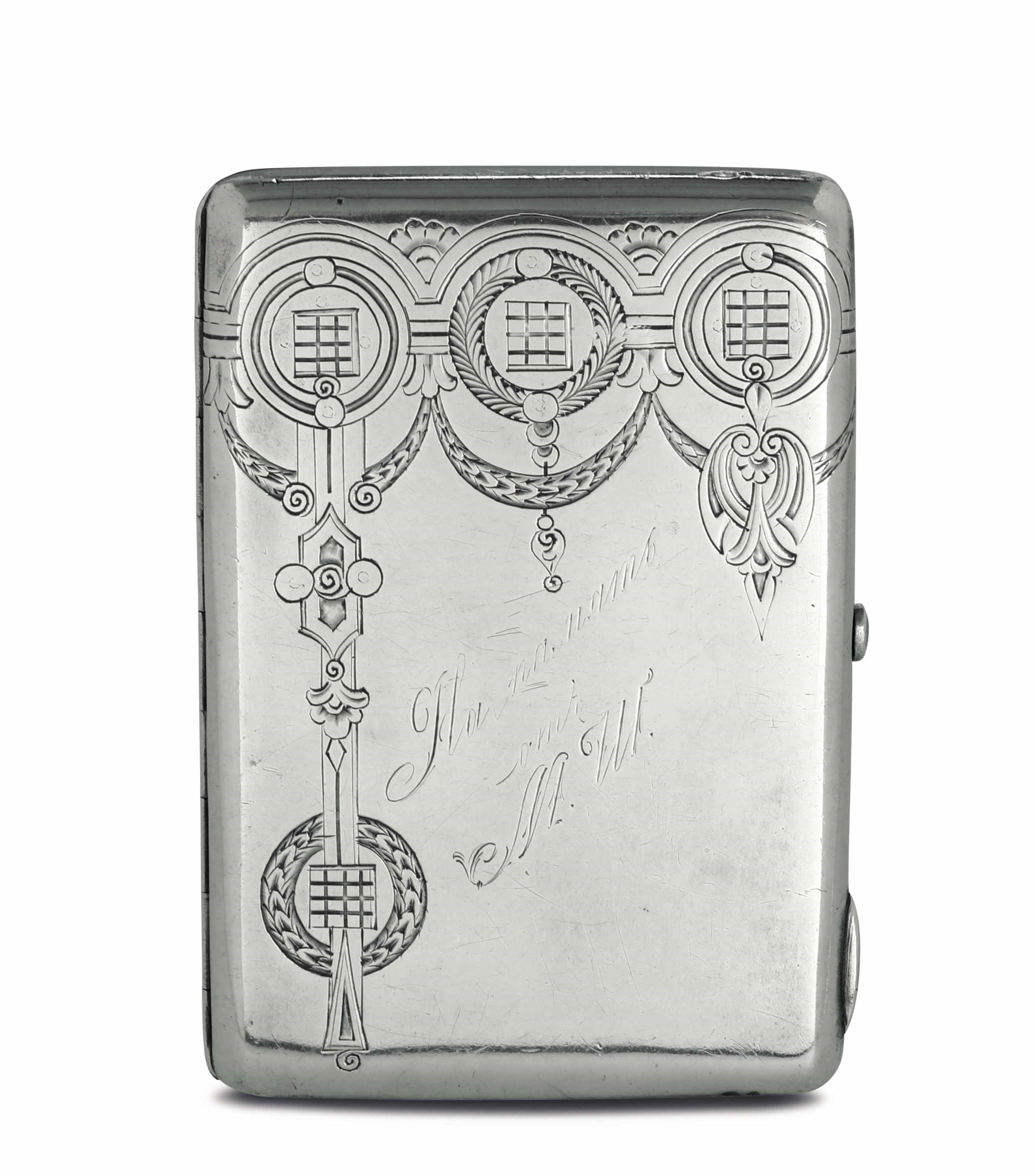 Portasigarette. Argento fuso, sagomato e cesellato. Mosca 1909-1917