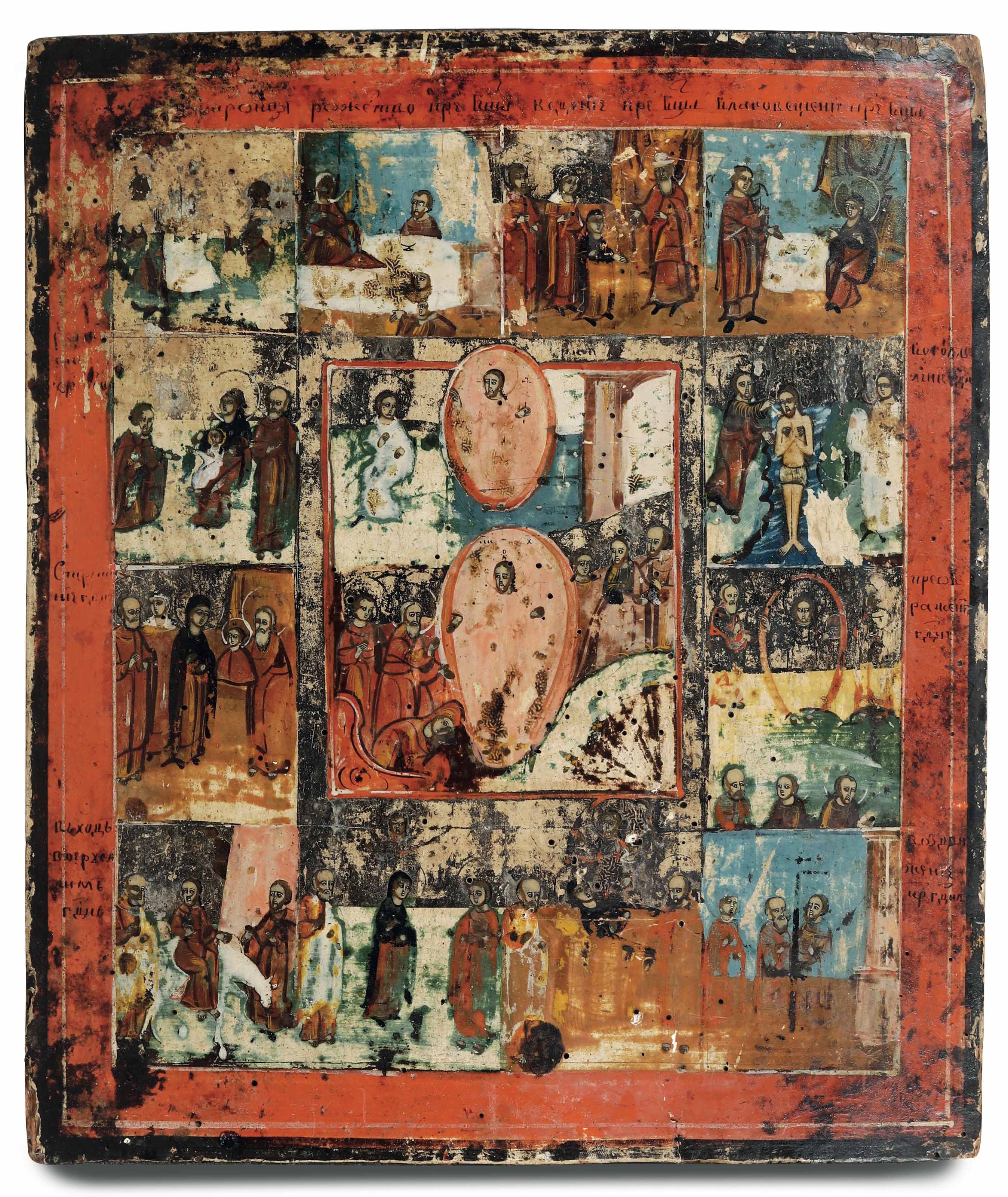 Scene della vita di Cristo. Icona ad olio su tavola. Scuola russa del XIX secolo