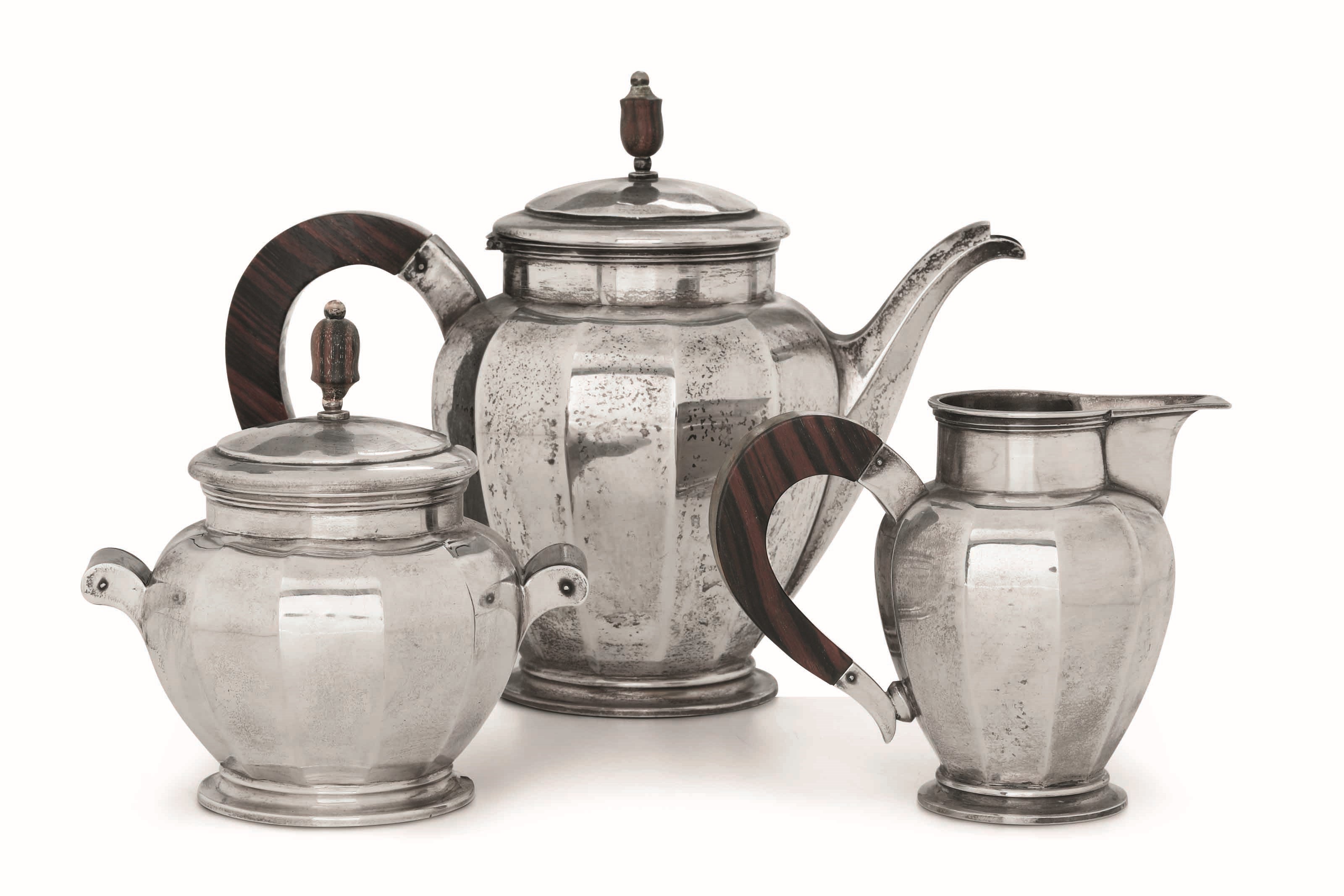 Servizio da tè e caffè. Argento 900 fuso e sbalzato. Argenteria artistica milanese [..]