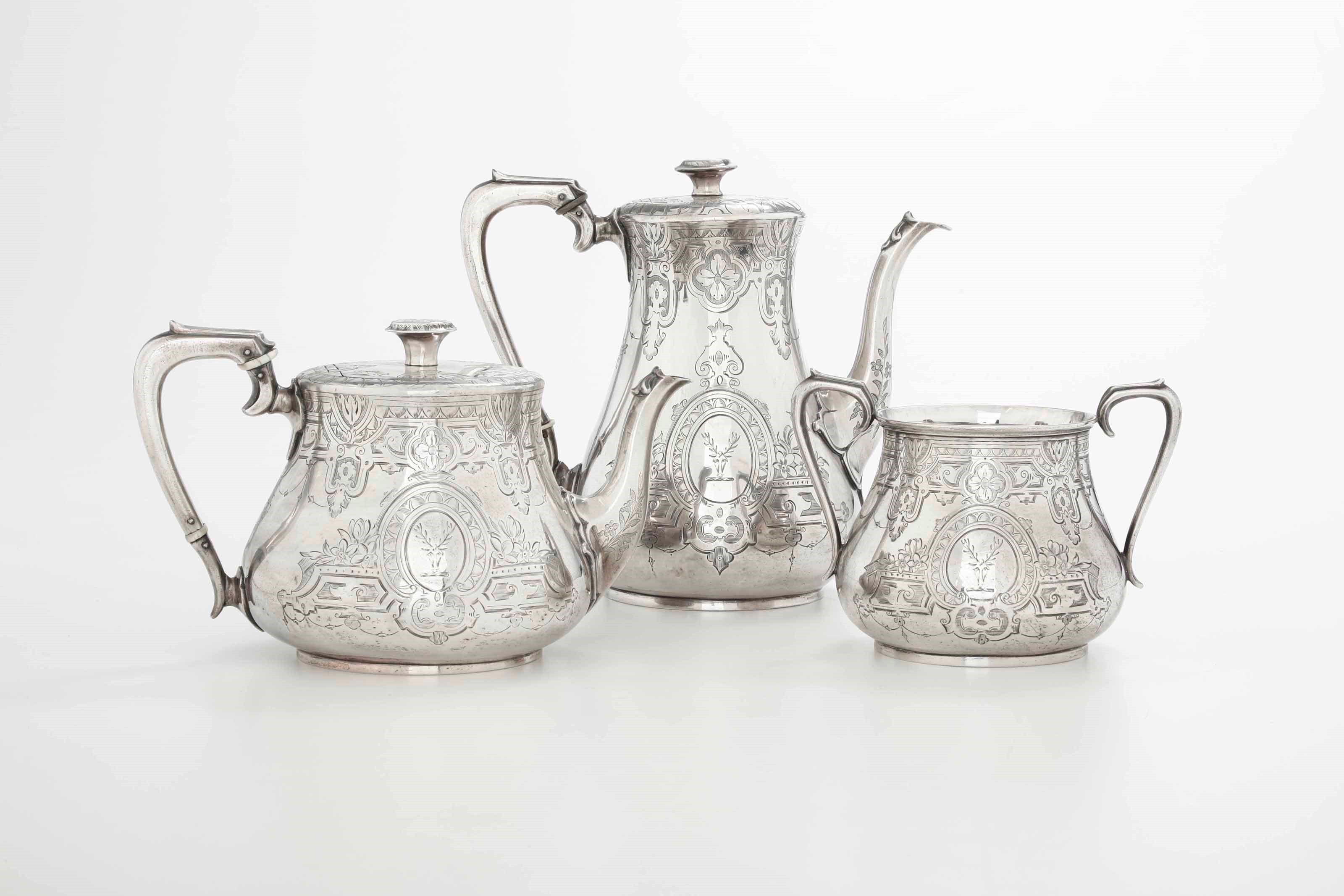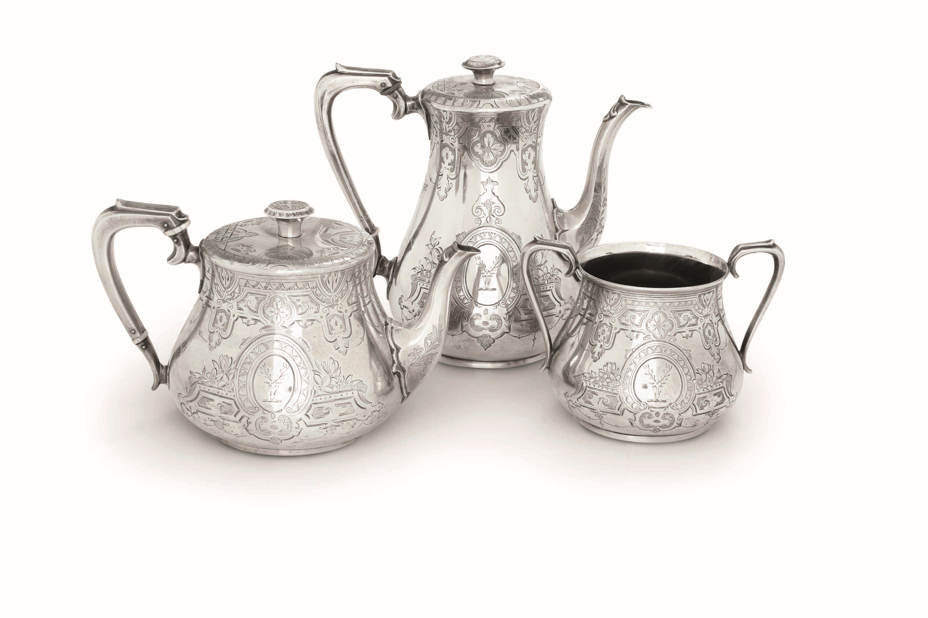 Servizio da tè e caffè. Argento fuso, sbalzato e cesellato. Marchi della città di [..]