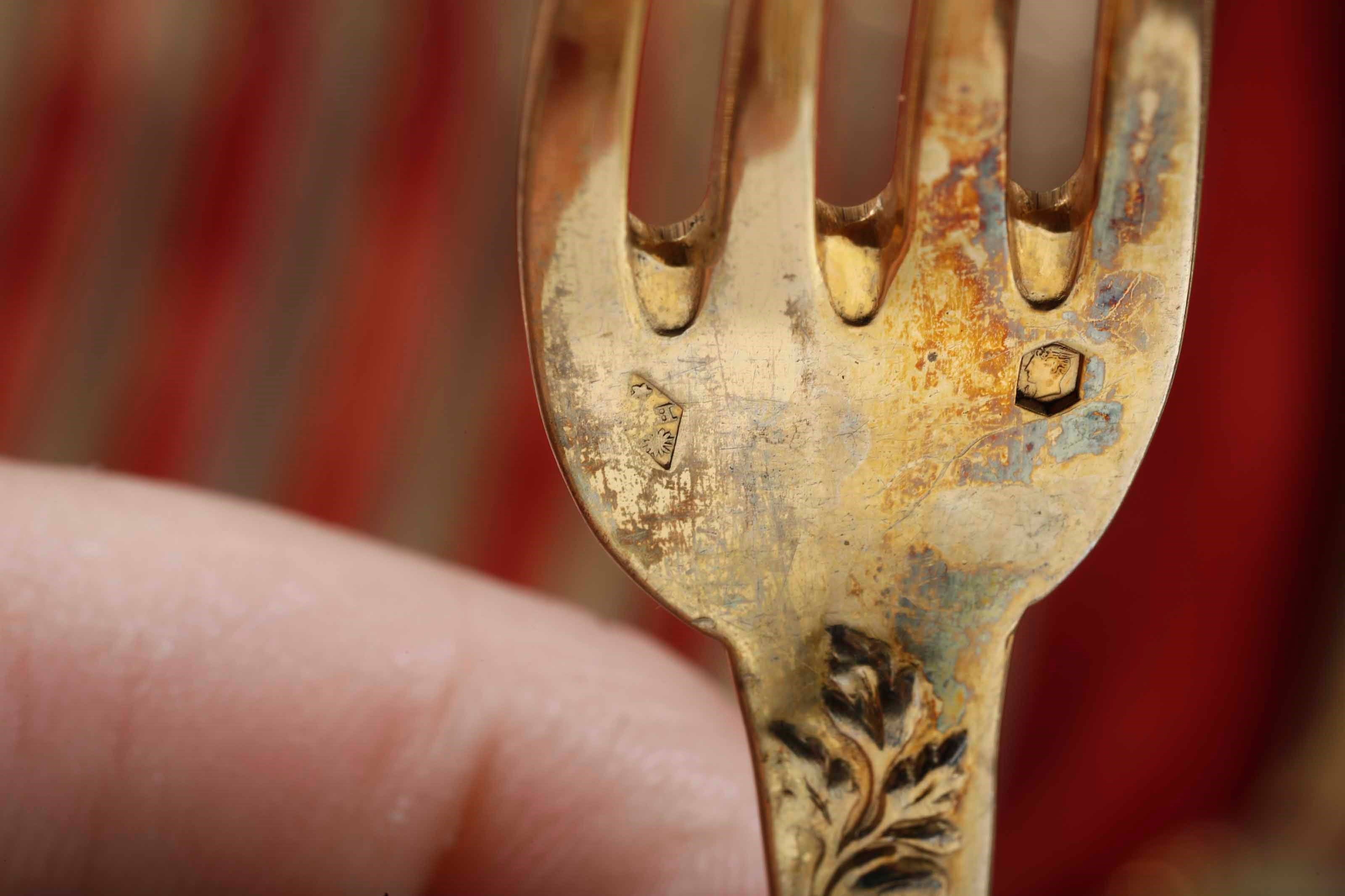 Servizio do posate da dessert per 18 persone. Argento primo titolo vermeille. Francia [..]