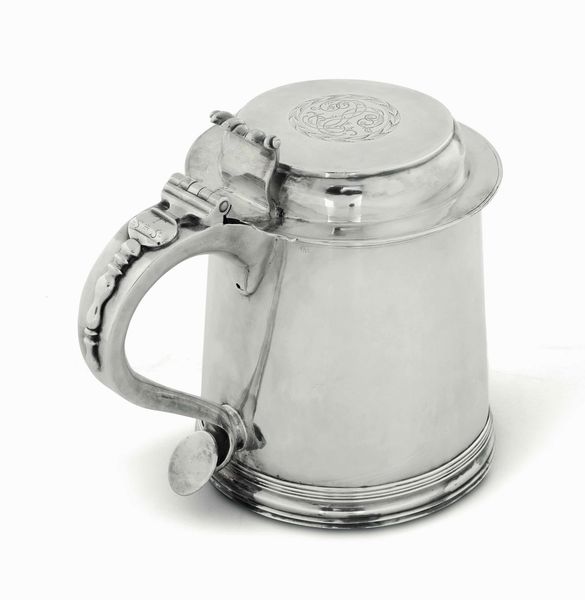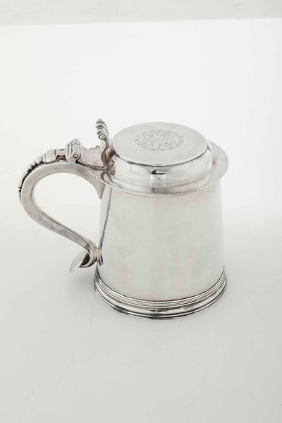 Tankard in argento fuso, sbalzato e cesellato. Inghilterra probabile XVIII secolo. [..]