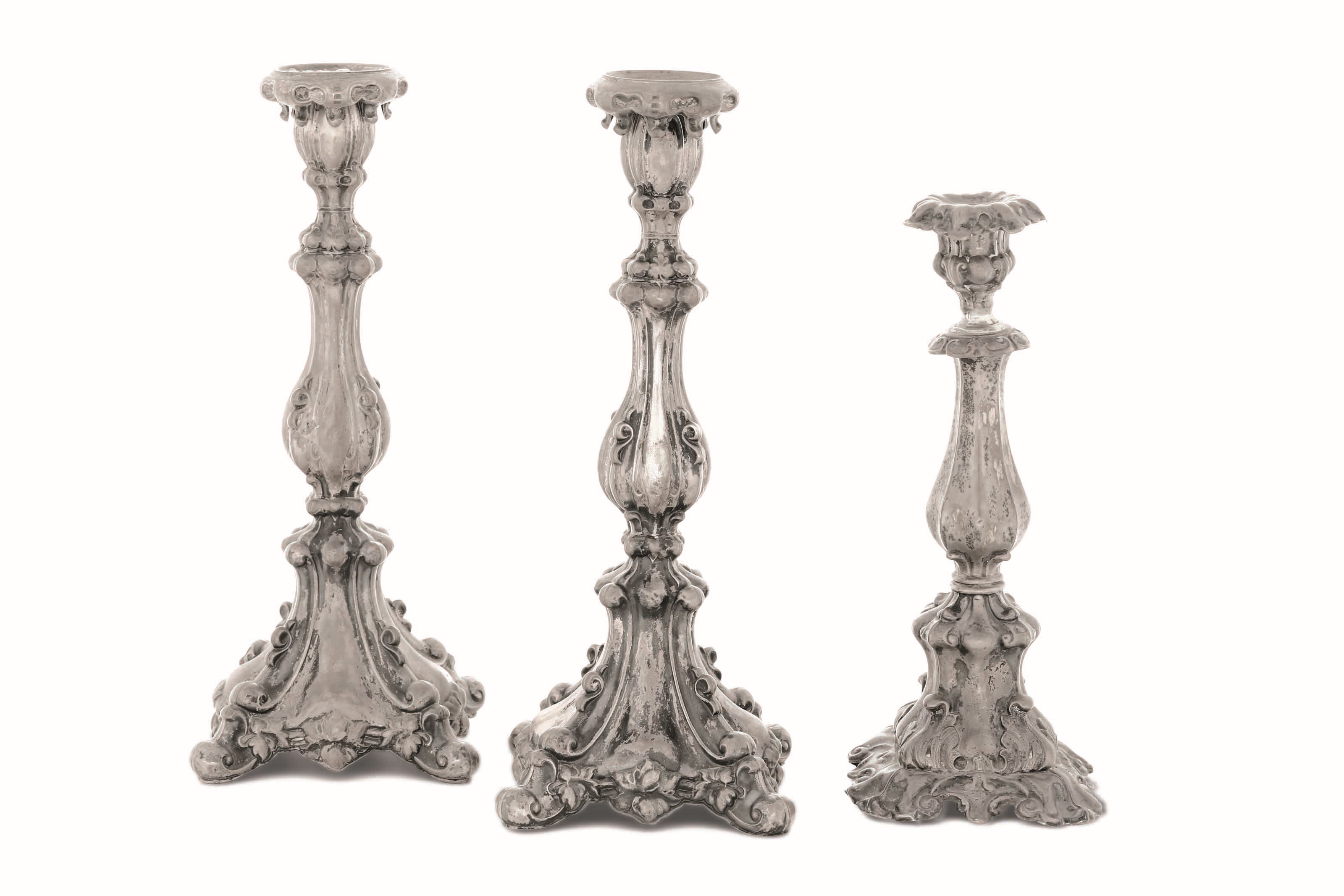 Tre candelieri. Argento fuso, sagomato e cesellato. Impero austro ungarico XIX-XX [..]