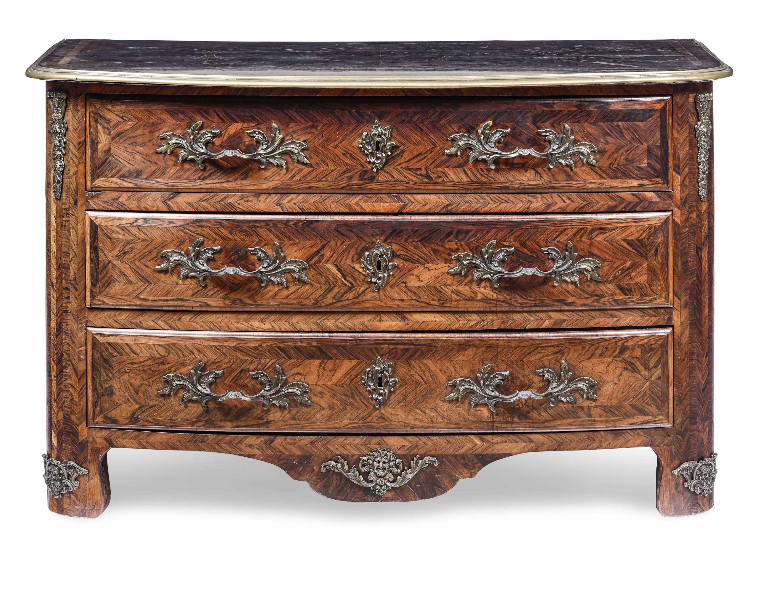 Cassettone a tre cassetti lastronato. XVIII secolo