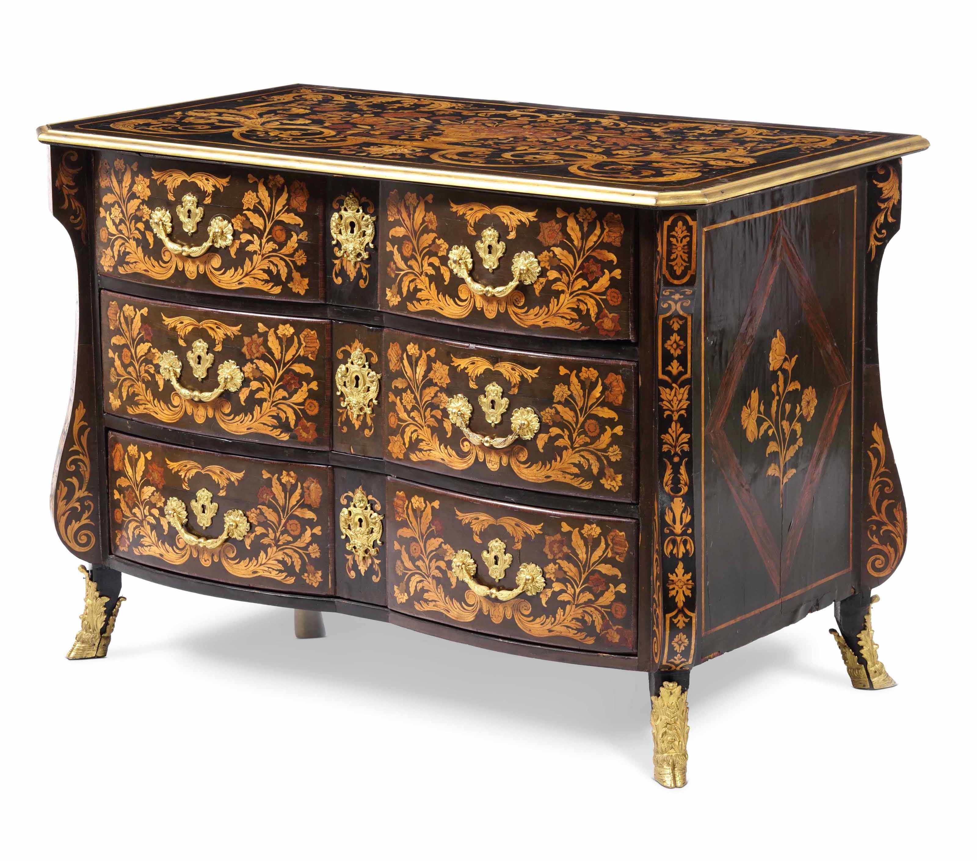Commode lastronato ed intarsiato in essenze pregiate. Francia, prima metà XVIII [..]