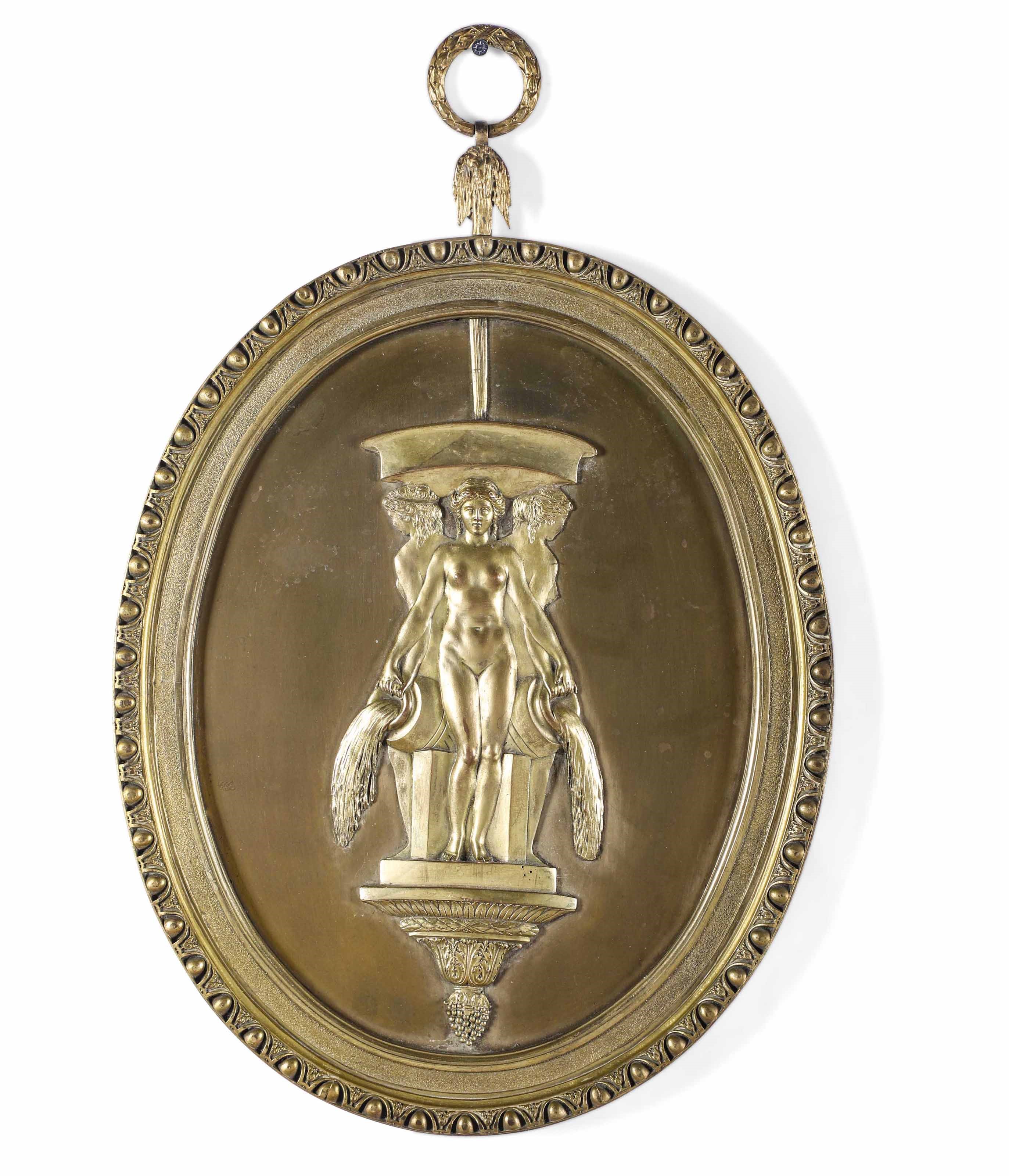 Coppia di placche in bronzo dorato. Francia, 1800 ca.