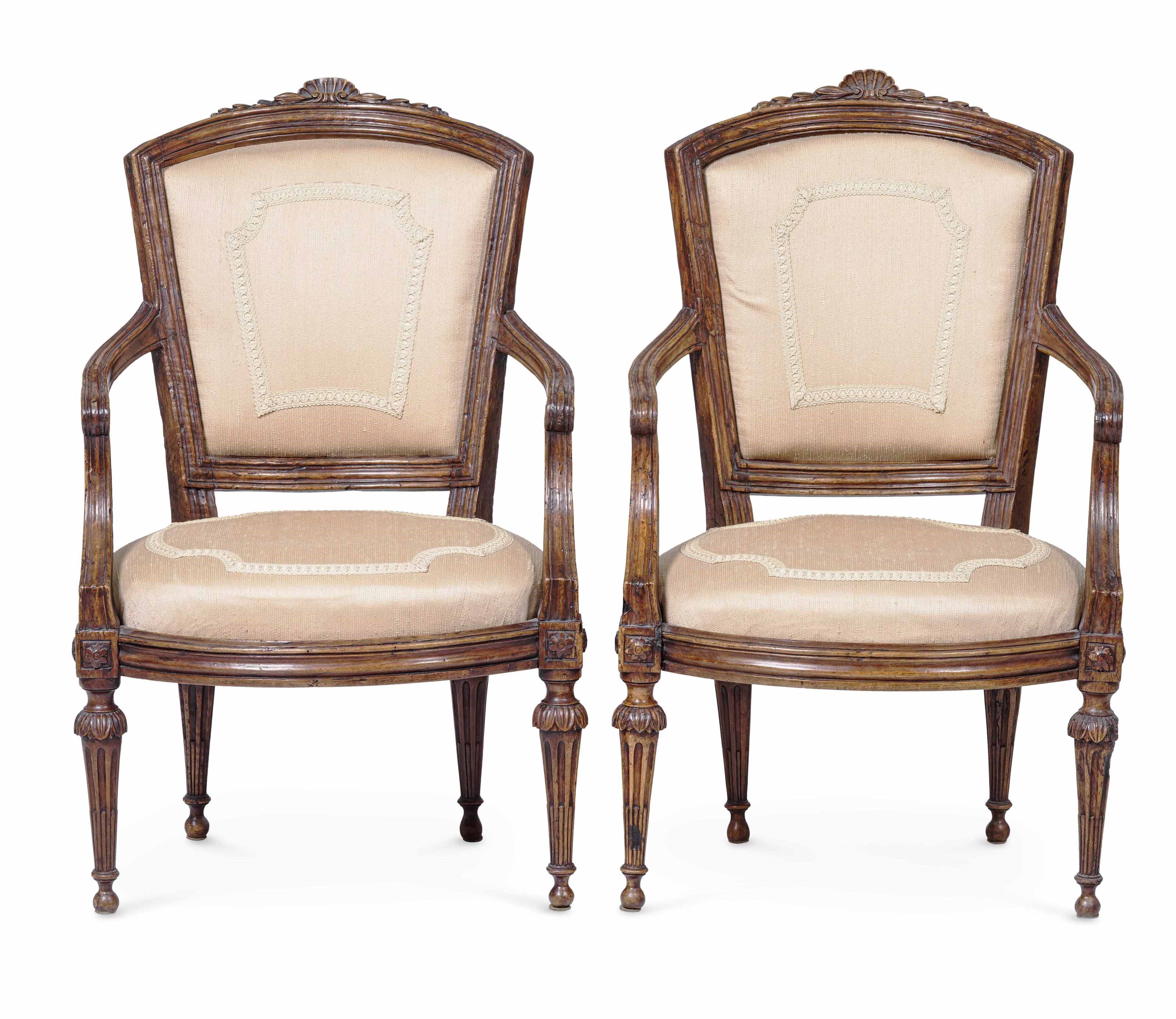 Coppia di poltrone Luigi XVI in noce intagliato. Genova, fine XVIII secolo